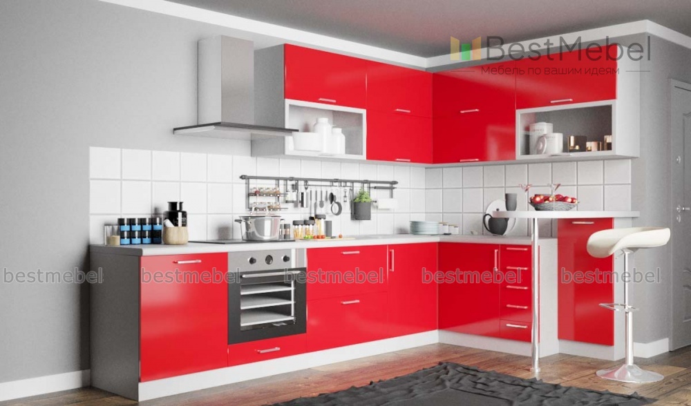 Кухня угловая Кипр 1 BMS - это ультрамодная композиция с фасадами в красном глянце, контрастными темными столешницами и хромированной фурнитурой. Практичная форма позволит выгодно использовать особенности планировки, а отражающие свет гладкие поверхности визуально расширяют пространство. Распашные отделения и выдвижные ящики компактно разместят как габаритные кухонные принадлежности, так и мелочи, а удобным решением для быстрых перекусов станет приставная барная стойка. Купить кухню угловую Кипр 1 BMS для современного интерьера приглашаем в наш интернет-магазин.