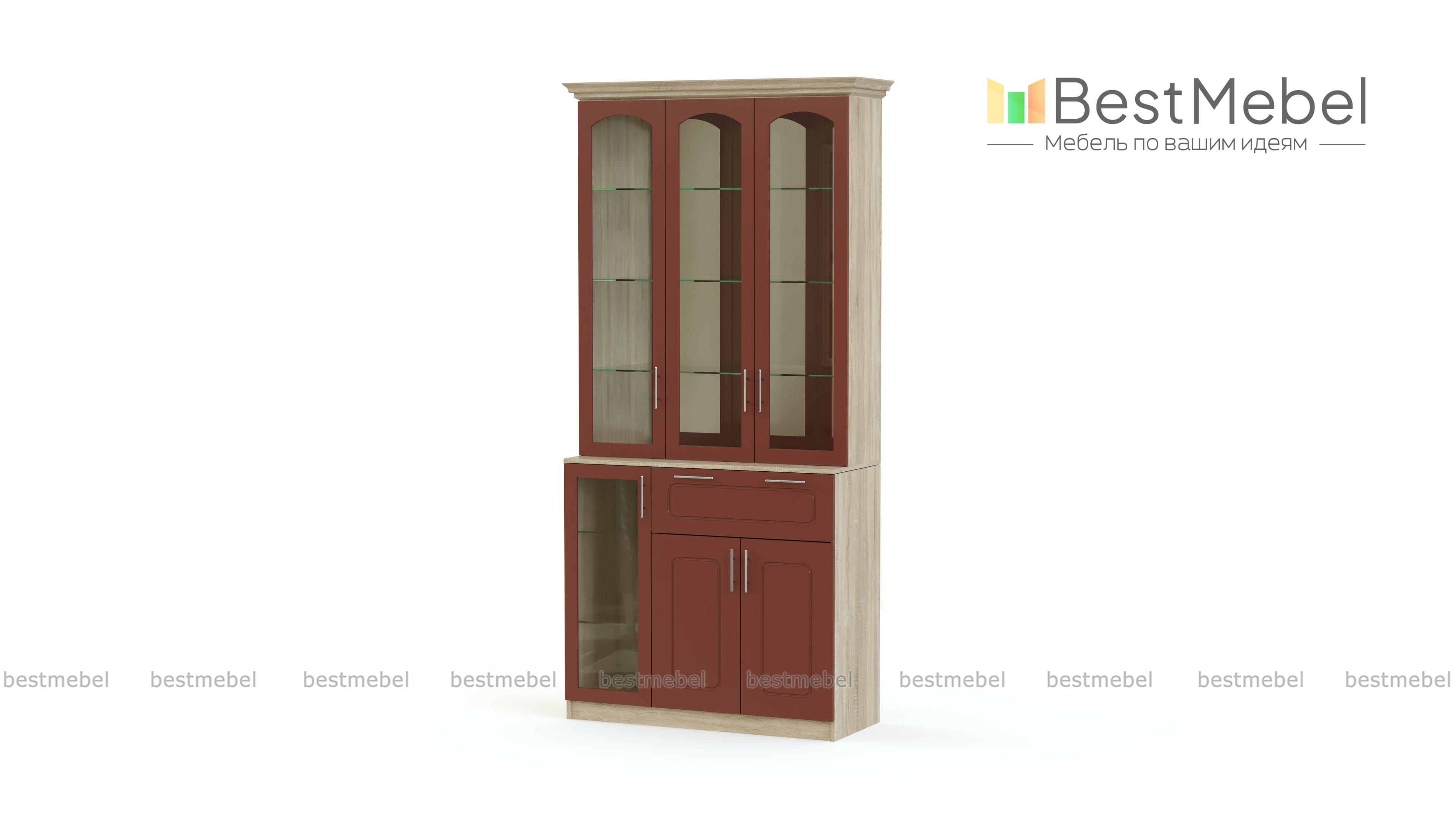 Шкаф для посуды Венеция 2 BMS создаст в вашем доме по-настоящему уютную, комфортную атмосферу. Классическая модель украсит не только столовую, но и традиционную гостиную в квартире или загородном доме. В нижней части шкафа располагаются распашное отделение с полками, выдвижной ящик и застекленная секция. Верхняя – просторная витрина с зеркальной задней стенкой, на фоне которой будут особенно выгодно смотреться интерьерные украшения и посуда. Купить шкаф для посуды Венеция 2 BMS, подобрав наиболее подходящий вариант расцветки, вы сможете в нашем интернет-магазине.