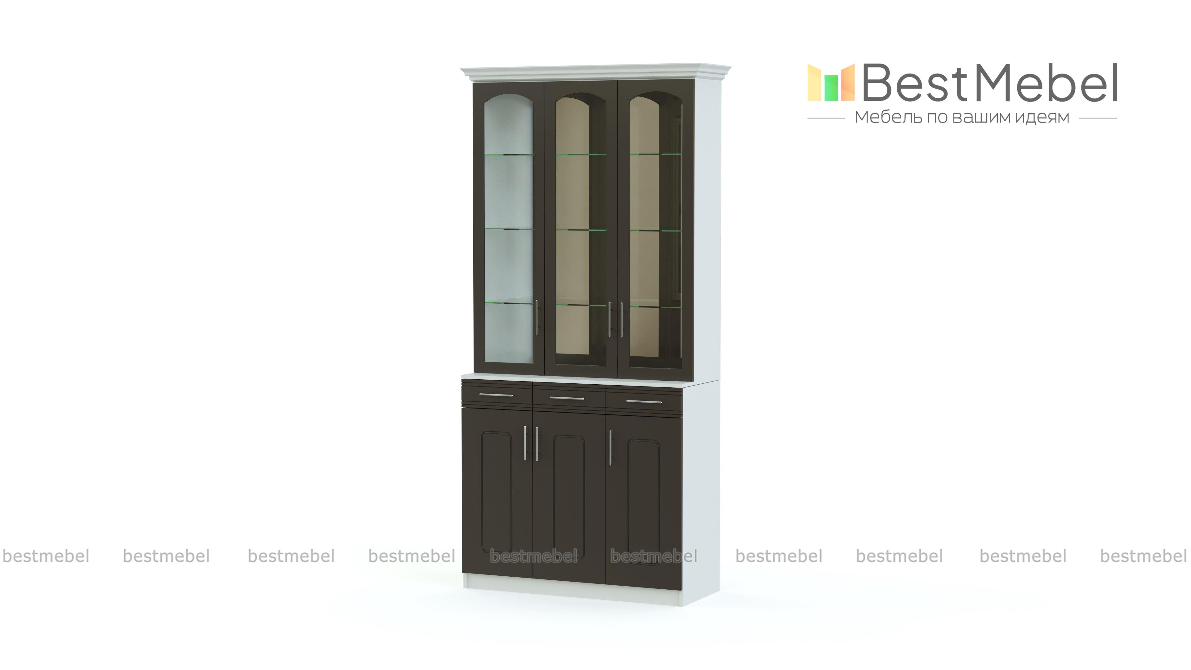 Шкаф для посуды Венеция BMS порадует поклонников классического декора в универсальных белых оттенках и с гармоничными пропорциями. Модель представляет собой комбинацию из комода с распашными отделениями и выдвижными ящиками и шкафчика-витрины. На изящно вырезанные стекла нанесен рисунок, а посуда будет особенно эффектно смотреться на фоне зеркальной стенки. Дверцы дополнены фигурными ручками в ретро-стиле. Купить шкаф для посуды Венеция BMS, подобрав одну из роскошных расцветок, вы сможете в нашем интернет-магазине.