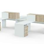 Бенч-система Альма 3 BMS отличается крупными габаритами, но при этом визуальной легкостью и гармонично впишется в просторные офисы типа опен спейс. Многофункциональная композиция включает в себя четыре компьютерных стола, дополненных мобильными тумбами с выдвижными ящиками. Зонировать рабочие места помогут расположенные по центру полки для документов с раздвижными дверцами. Купить бенч-систему Альма 3 BMS, выполненную в сочетании белого и цветных вставок, приглашаем в наш интернет-магазин.