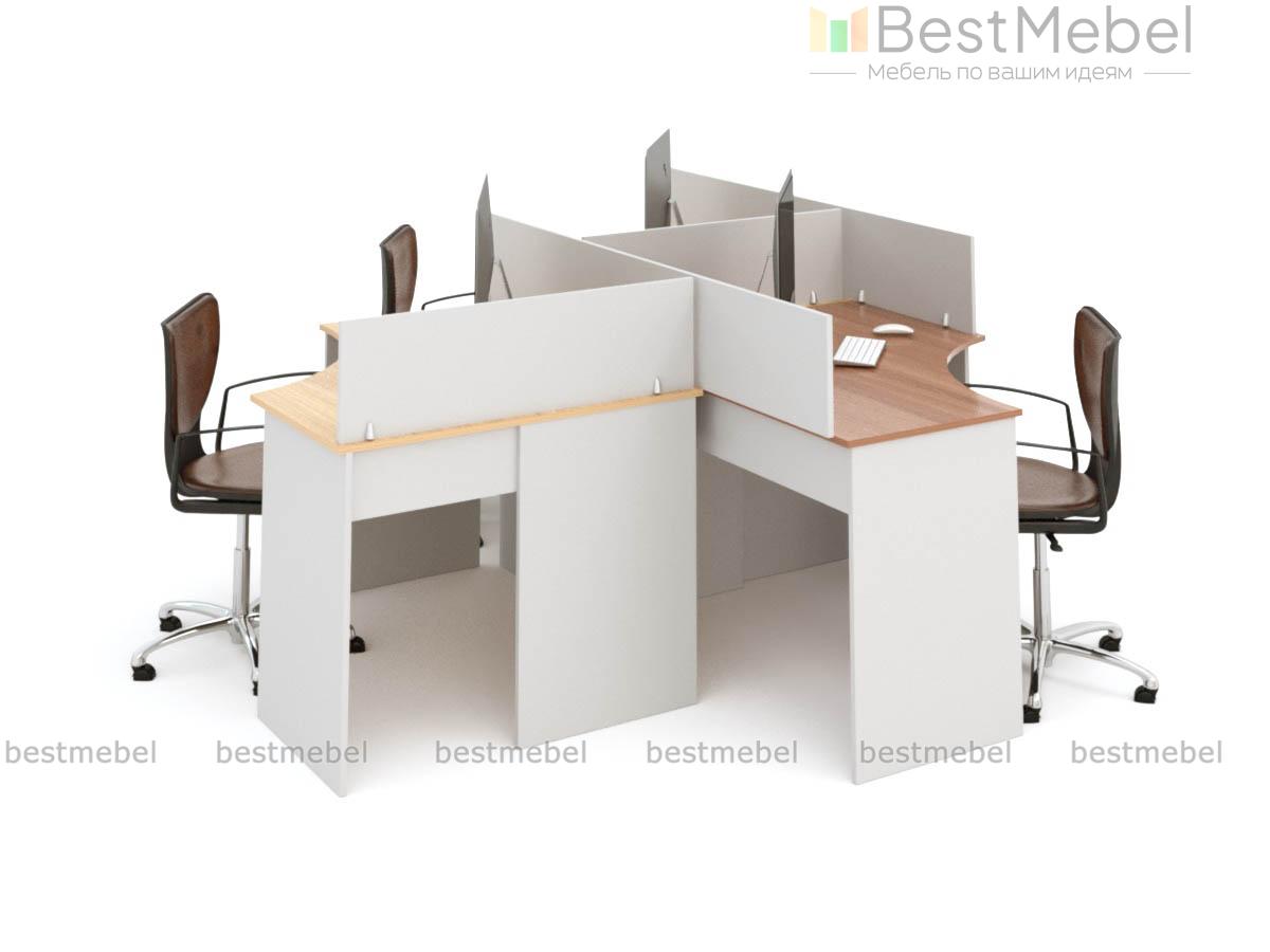 Бенч-система Лора 54 BMS – это оригинальная зигзагообразная композиция, которая сделает интерьер современного опен спейса не только функциональным, но и эффектным. Рассчитанная на трех сотрудников, модель объединила угловые, эргономичной формы столы с разделительными глухими перегородками, обеспечивающими личное пространство. В оформлении сочетаются нейтральный серый и контрастные древесные тона. Купить бенч-систему Лора 54 BMS и оптимизировать рабочий процесс вам поможет наш интернет-магазин.