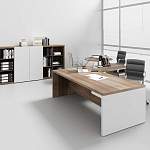 Кабинет руководителя Файн 5 BMS отличается стильной геометрией линий, которую подчеркивает цветовое решение – светлые древесные тона и белый. Композиция объединила письменный стол с просторной прямоугольной столешницей, приставной элемент и мобильную тумбу с выдвижными ящиками для хранения канцелярских принадлежностей и личных вещей. Комплект легко вписывается в современные офисные интерьеры, эргономичен и долговечен. Купить кабинет руководителя Файн 5 BMS вы сможете выгодно в нашем интернет-магазине.