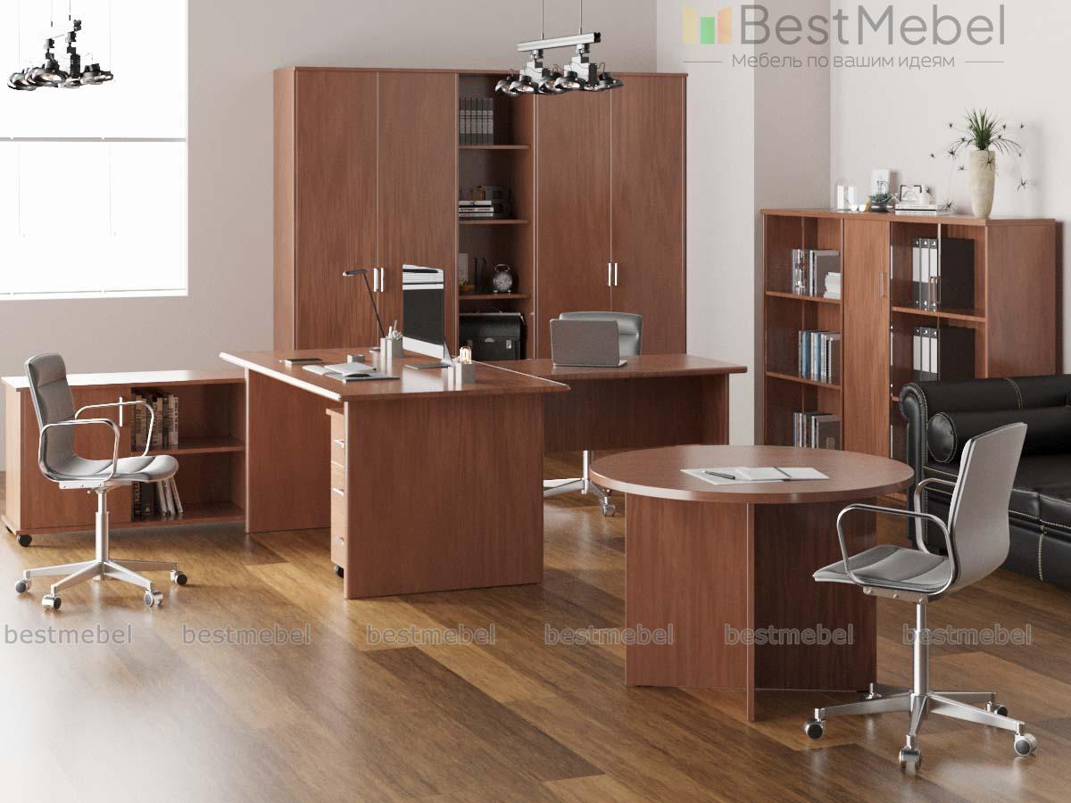 Кабинет руководителя Престон 1 BMS выполнен в универсальных древесных тонах и отличается современным эргономичным дизайном. Письменный стол с классической прямоугольной столешницей дополнен мобильной тумбой, брифингом и приставными секторами, делая максимально комфортными работу за компьютером и проведение переговоров. Для хранения документов в модульной коллекции предусмотрены шкафы с открытыми и застекленными полками. Купить кабинет руководителя Престон 1 BMS вы сможете в нашем интернет-магазине по лучшей цене.