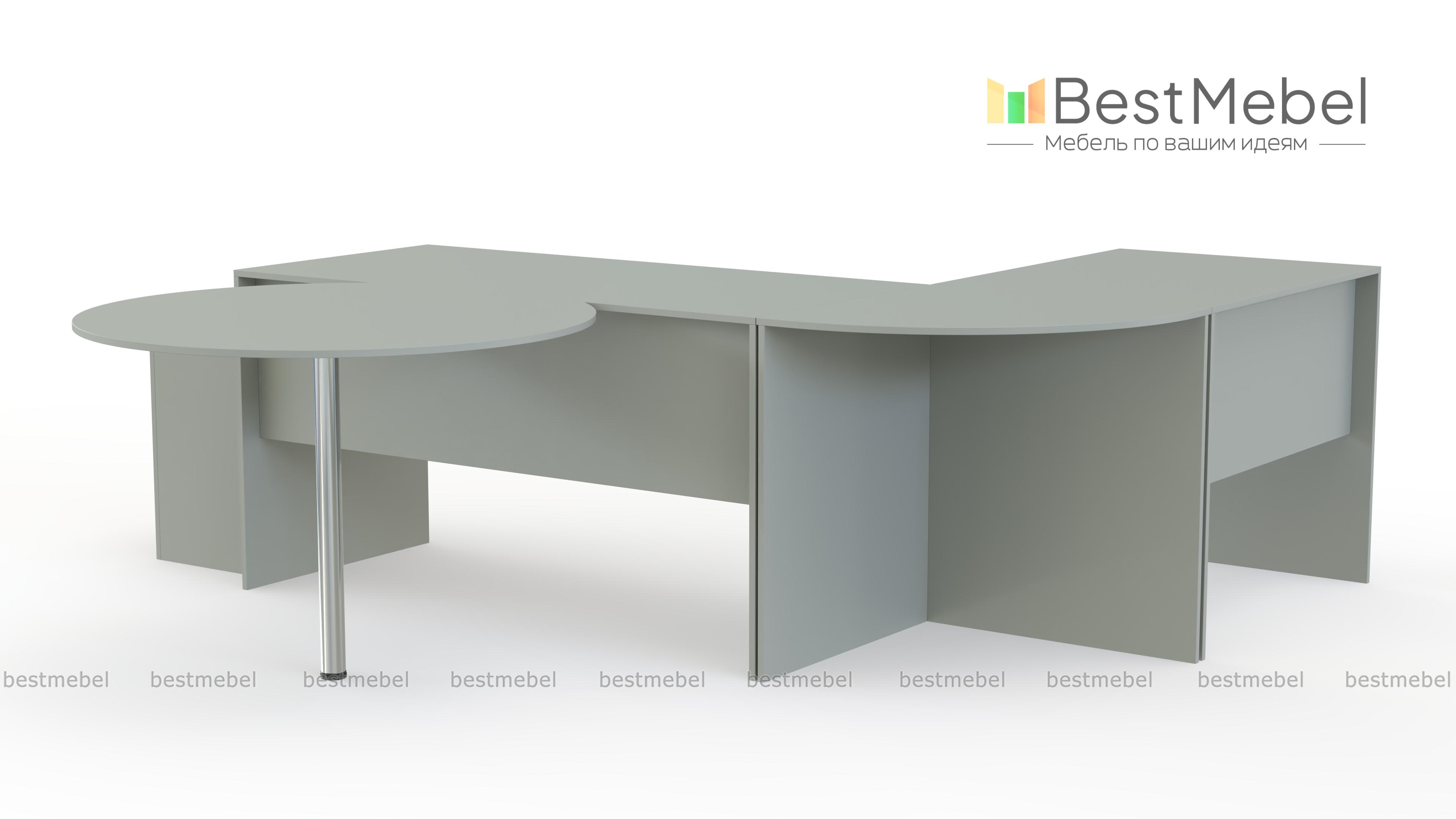 Офисный комплект Uno № 4 BMS – простое и оригинальное решение для кабинета руководителя. Классический прямой письменный стол дополнен тремя приставными – угловым, миниатюрным прямоугольным и круглым на металлической опоре. Продуманная конструкция позволит сделать рабочее совещание максимально комфортным для всех участников. Традиционные древесные оттенки тонов создадут спокойную, деловую обстановку. Купить офисный комплект Uno № 4 BMS по демократичной цене приглашаем в наш интернет-магазин.