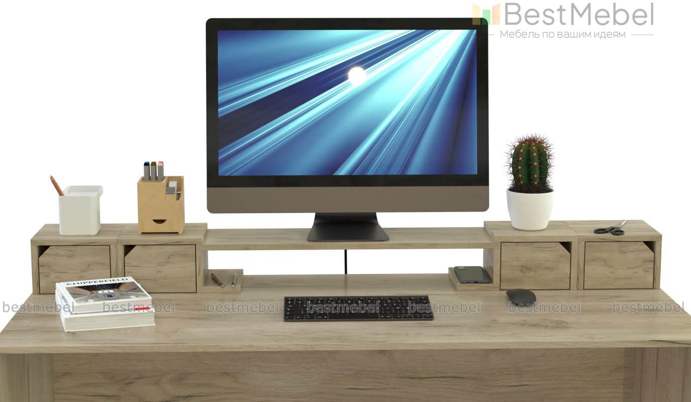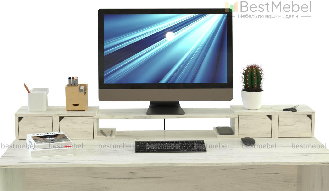 Подставка под монитор Олимп-2 BMS поможет вам эффективно организовать рабочее пространство. Расположенная по всей ширине столешницы, надстройка оборудована просторной нишей в центре и четырьмя закрытыми отделениями – по два с каждой стороны. Практичная конструкция дает возможность разместить как монитор, так и периферийные устройства, канцелярские принадлежности и прочие мелочи. Купить подставку под монитор Олимп-2 BMS приглашаем на сайт нашего интернет-магазина.