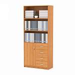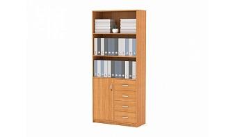Шкаф для бумаг ШБ-7 BMS ‒ многофункциональное изделие для офиса или учебного заведения. Модель имеет два отделения. Верхнее открытое ‒ с двумя вкладными полками можно с удобством использовать для хранения стандартных папок с файлами, наград фирмы или элементов декора. Нижнее разделено на два отсека: закрытое распашной дверцей и отделение с четырьмя выдвижными ящиками для расположения канцелярских принадлежностей и инвентаря. Расположение секций позволяет купить шкаф для бумаг ШБ-7 BMS и для офисной кухни.