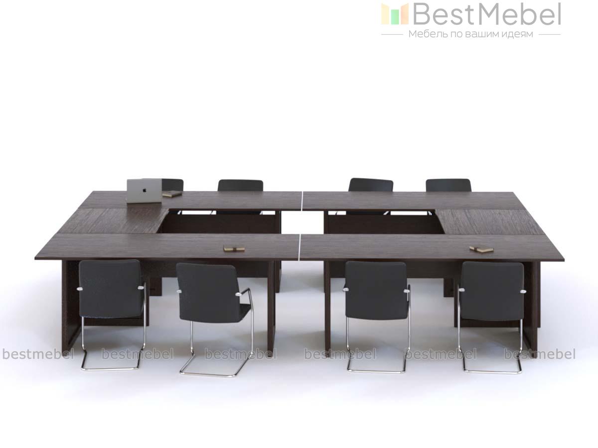 Стол для переговоров Лайонел 1 BMS представляет собой крупногабаритную составную конструкцию. Композиция объединила модули со стандартными прямоугольными столешницами и широкими опорами и две брифинг-приставки, позволяя с комфортом разместить участников совещания по периметру. Выполненная в темных древесных тонах, модель отличается современным дизайном, представительным видом и функциональностью. Купить стол для переговоров Лайонел 1 BMS приглашаем выгодно в наш интернет-магазин.