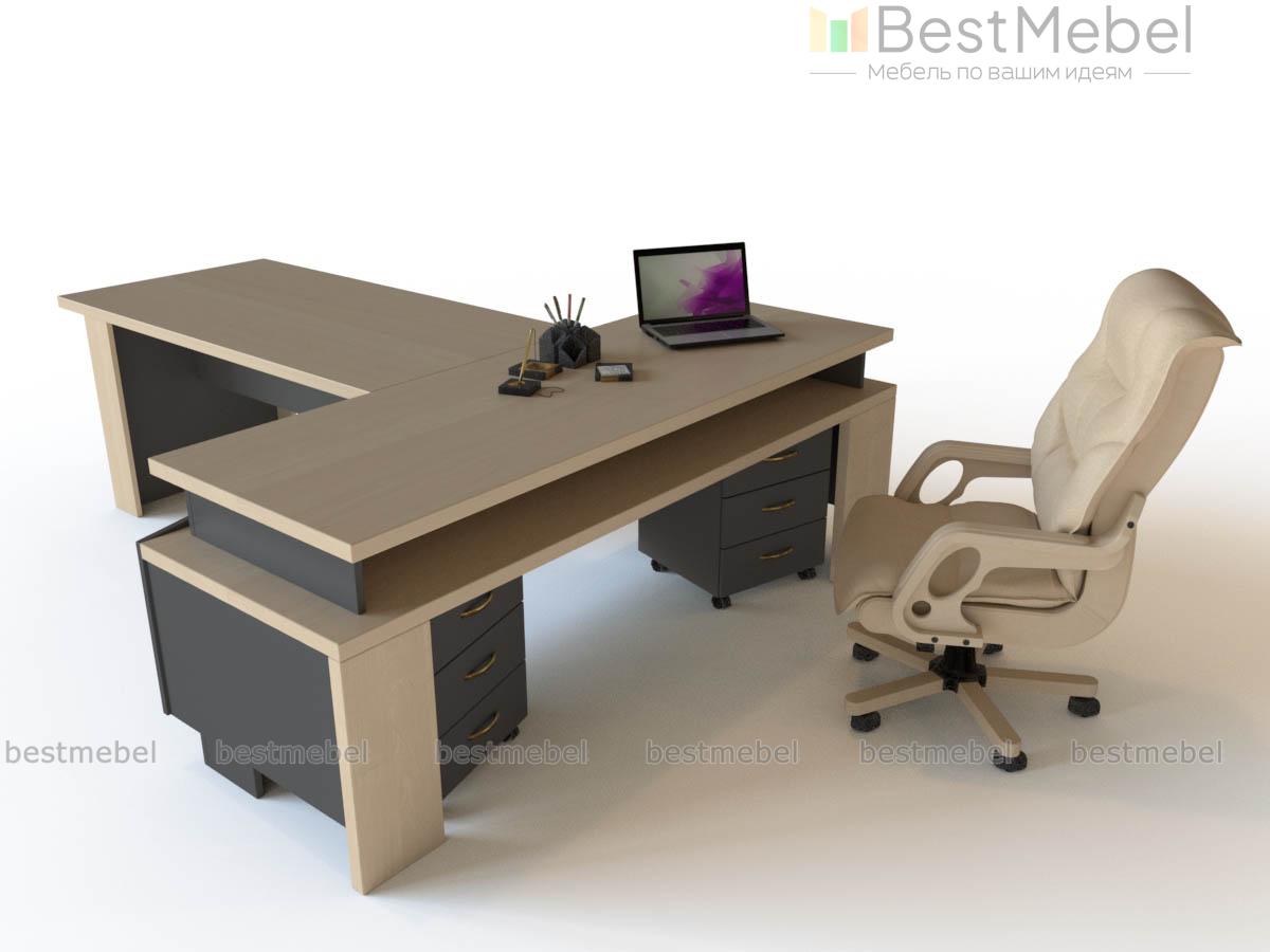 Стол руководителя Тортон BMS – стильная модель, отражающая характер современной динамичной компании. Композиция, выполненная в сочетании корпуса матового графитового оттенка и светлых столешниц под древесный массив, органично дополнит современные интерьеры с элементами стиля лофт или хай-тек. Прямоугольный письменный стол с широкой опорной тумбой дополнен просторной приставкой-брифингом для проведения совещаний. Купить стол руководителя Тортон BMS по отличной цене приглашаем к нам в интернет-магазин.