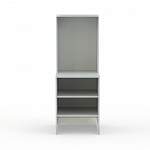Цоколь по низу стойки - 100 мм, отделанный тонкой полосой сатинированного металлического листа.