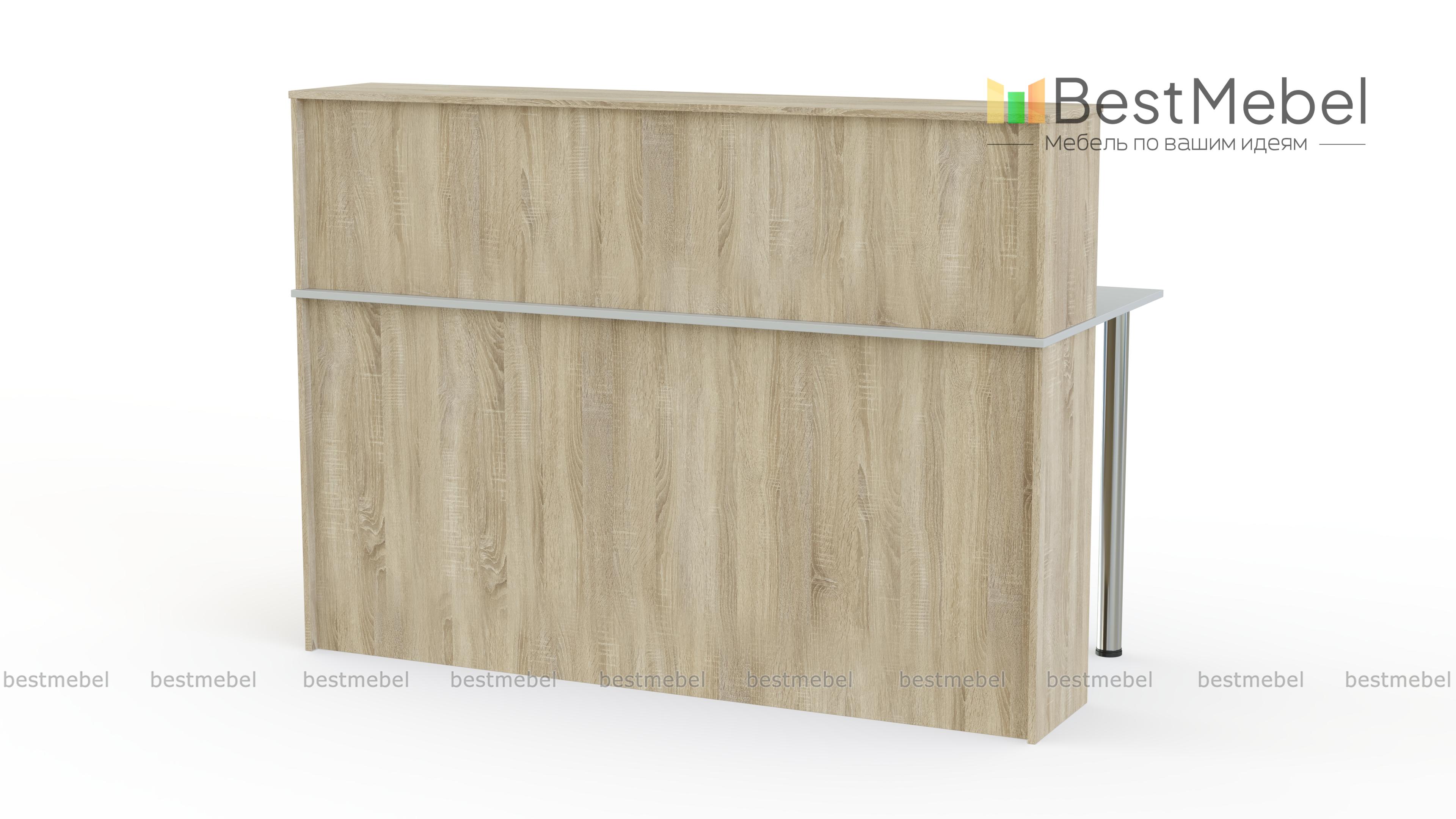 Стойка ресепшн Модуль 2424 BMS гармонично дополнит интерьер приемной в современном стиле минимализм или хай-тек. Сочетание различных фактур - окрашенного металла, матового корпуса и теплых древесных оттенков создает строгий и одновременно респектабельный вид. Прямая стойка оборудована двумя столешницами – узкой верхней для посетителей и широкой внутренней для администратора, на которой удобно разместятся рабочие принадлежности. Купить стойку ресепшн Модуль 2424 BMS для эффектного и функционального офиса приглашаем в наш интернет-магазин.