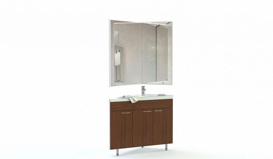 Комплект для ванной Роста 3 BMS позволит максимально эффективно использовать доступное пространство. Нестандартное интерьерное решение представляет собой угловую композицию из асимметричной радиусной тумбы под раковину и зеркала с подсветкой. Вы сможете компактно разместить уходовые средства в двух распашных отделениях, а отсутствие острых углов сделает пользование особенно комфортным. Купить комплект для ванной Роста 3 BMS, выполненный в древесном цвете с хромированной фурнитурой, приглашаем в наш интернет-магазин.