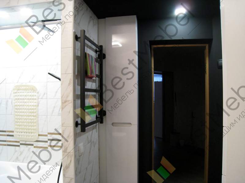 Заказ 00000913112, Пенал в ванную Блейк 5 BMS (330х2270х150).Надо было в ванной прикрыть стояк ГВ со счетчиком и разводкой дверцами определенного дизайна (фасады белый глянец лак, фрезеровка "без ручек").Подошел этот пенал, выполненный по моим размерам, и в моей комплектации. (петли Clip-On с доводчиком, без полок и задней стенки).После подтверждения изменений, заказ привезли через 10 дней. Сборка и установка прошли так, как задумывалось, хотя, конечно, ввиду необычности конструкции (по моей идее одна из боковин пенала повернута параллельно дверцам, и вынимается для легкости доступа) пришлось по месту шаманить самому. Результатом очень доволен, спасибо за широкие возможности для творчества!