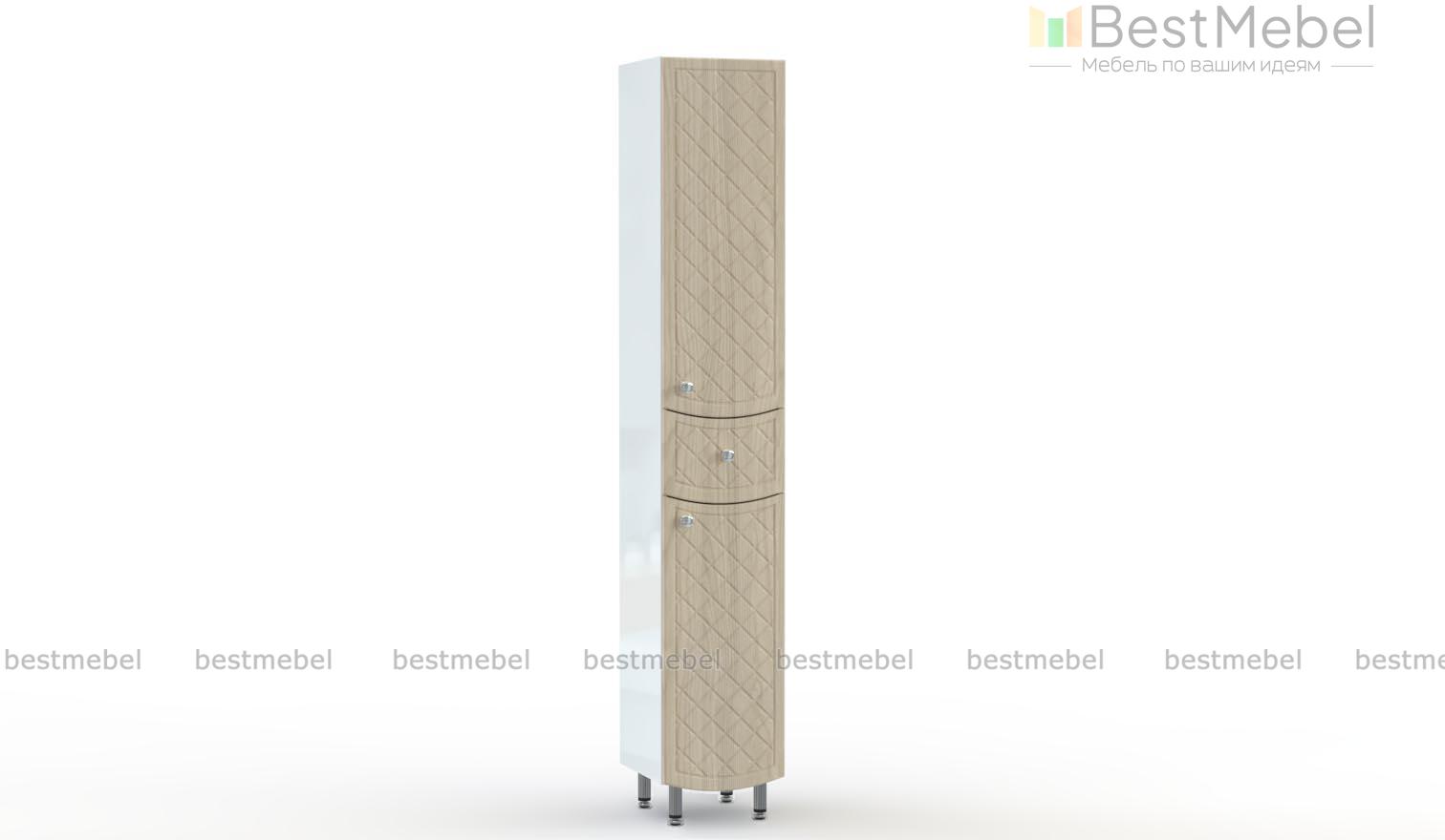 Пенал в ванную комнату Ной 6 BMS сочетает в себе практичность конструкции и изящный дизайн. Высокий пенал на регулируемых хромированных опорах выполнен в белом цвете из износостойких материалов и декорирован фрезеровкой ромбами, фасады фигурно вырезаны. Два распашных отделения с полками и выдвижной ящик помогут вам разместить текстиль и гигиенические принадлежности, бытовую химию и аксессуары. Купить пенал в ванную комнату Ной 6 BMS приглашаем в наш интернет-магазин.