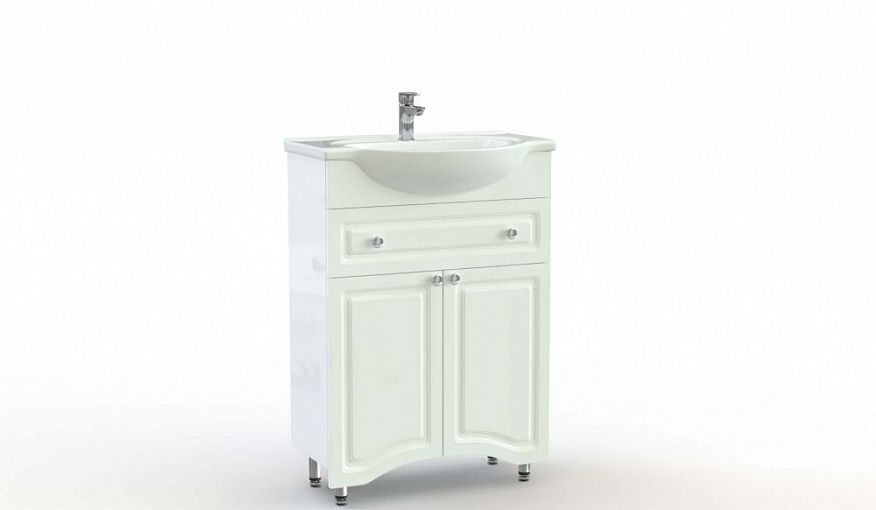 Тумба для ванной комнаты Ньют 2 BMS поможет создать комфортный и эстетичный интерьер в современном классическом стиле. Расположенная вплотную к стене тумба разместит раковину и скроет коммуникации, а для хранения гигиенических принадлежностей и хозяйственных мелочей предусмотрены выдвижной ящик и двухдверное распашное отделение. Фигурно вырезанный фасад в белом цвете декорирован рамочной фрезеровкой. Купить тумбу для ванной комнаты Ньют 2 BMS приглашаем в наш интернет-магазин.