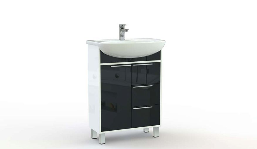 Тумба для ванной Найт 11 BMS сочетает в себе актуальный минималистичный дизайн и функциональность. Модель под раковину дополнена удобной системой хранения из распашного отделения и трех выдвижных ящиков, которые помогут разместить бытовую химию и уходовые средства, аксессуары и прочие мелочи. Корпус белых тонов скомбинирован с контрастным черным фасадом, торцевые ручки делают пользование комфортным. Купить тумбу для ванной Найт 11 BMS приглашаем к нам в интернет-магазин.
