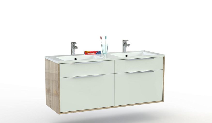 Тумба в ванную Атлас 5 BMS сэкономит время умывание, разместив сразу две раковины. Широкая подвесная модель, выполненная в сочетании белого и древесного корпуса, эффектно дополнит популярные современные интерьеры. Тумба скроет коммуникации и компактно разместит все необходимые гигиенические принадлежности в двух выдвижных отделениях с торцевыми ручками. Купить тумбу в ванную Атлас 5 BMS в сможете на сайте нашего интернет-магазина.