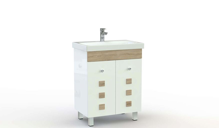 Тумба в ванную Бланш 9 BMS с геометричными древесными накладками на фасаде отлично смотрится в современных интерьерах – как часть модульного комплекта и самостоятельно. Пристенная тумба на высоких устойчивых ножках разместит раковину и скроет коммуникации, а для хранения бытовой химии, уходовых средств и аксессуаров предусмотрено двухдверное распашное отделение. Влагостойкие поверхности надолго сохранят эстетичный вид. Купить тумбу в ванную Бланш 9 BMS приглашаем в наш интернет-магазин.