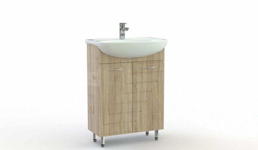 Тумба в ванную Ханна 6 BMS – это недорогая и практичная пристенная модель, которая легко вписывается в типовые помещения. Тумба под раковину на высоких регулируемых опорах оборудована двухдверным распашным отделением и компактно разместит бытовую химию, хозяйственные принадлежности и уходовые средства. Влагостойкий фасад в бежевом цвете декорирован лаконичной фрезеровкой. Купить тумбу в ванную Ханна 6 BMS по доступной цене вы сможете на сайте нашего интернет-магазина.