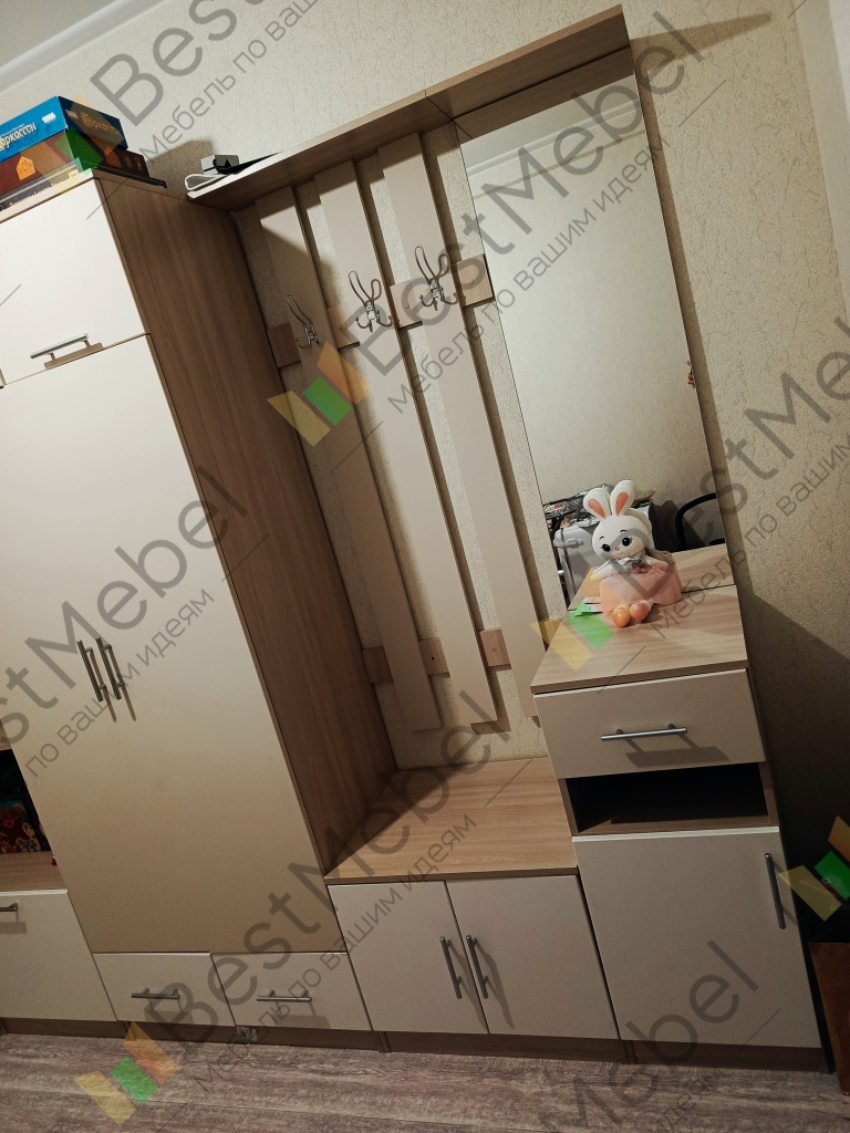 Отличная прихожая, заказывала в конце апреля (Заказ № 00000117985), до сих пор не нарадуюсь! Качество отличное, прихожая функциональная, много шкафчиков, ящиков, полок, уместила все свои многочисленные вещи в одном шкафу. Внешний материал очень приятный на ощупь, как будто бархатный. Цвета выбрала светлые, очень освежает прихожую.