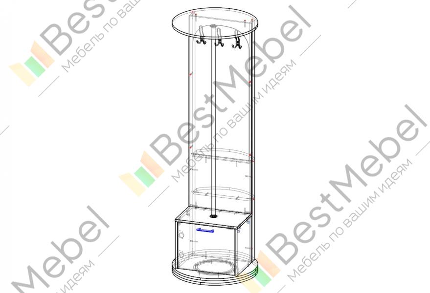 Поворотная прихожая 4 BMS – это миниатюрные размеры, практичная конструкция и доступная цена. Незаменимая в малогабаритных помещениях, модель с поворотным механизмом компактно объединила все самое необходимое для размещения верхней одежды, обуви и аксессуаров. Прихожая на круглом основании оборудована зеркалом с открытыми полочками, глухим ящиком в основании и хромированной стойкой с крючками. Купить Поворотную прихожую 4 BMS недорого приглашаем в наш интернет-магазин.