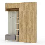 Прихожая Дакота 13 BMS - для атмосферного интерьера, в котором дизайнерские тренды сочетаются с продуманным функционалом. Фасады двухдверного шкафа и антресолей выполнены под массив дерева, а панель открытой вешалки и стеллаж - универсальная светлая база. В нишу органично вписывается пуф с ножками в стиле сканди, а полки стеллажа освещают встроенные светодиоды. Купить прихожую Дакота 13 BMS приглашаем в наш интернет-магазин с индивидуальным подбором цвета и размеров.