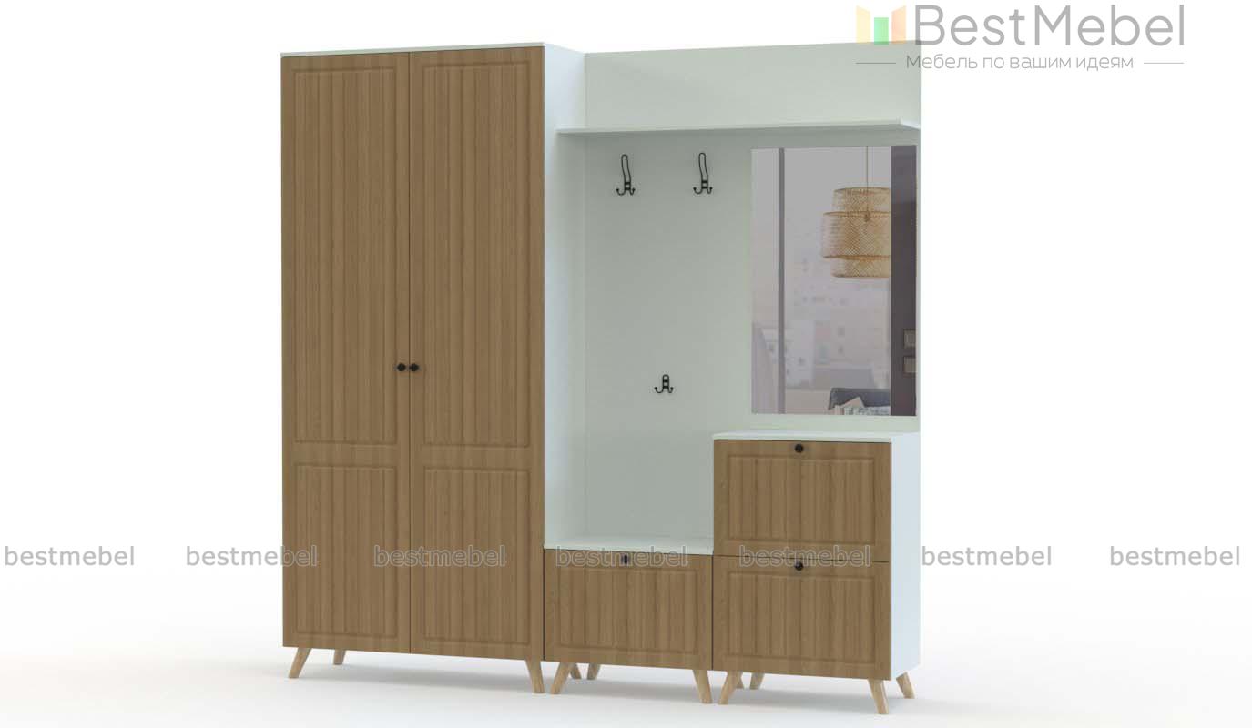 Прихожая Диана 15.2 BMS с классической вертикальной фрезеровкой на фасаде поможет удобно и эстетично организовать хранение. Модули одной высоты смотрятся как единая конструкция, а высокие скошенные ножки добавляют пространству «воздуха». Двухдверный платяной шкаф, открытая вешалка с крючками и верхней полкой, дополненная зеркалом тумба и обувница компактно разместят одежду, обувь, аксессуары и важные мелочи. Купить прихожую Диана 15.2 BMS вы сможете в нашем интернет-магазине с выбором цвета и размеров.