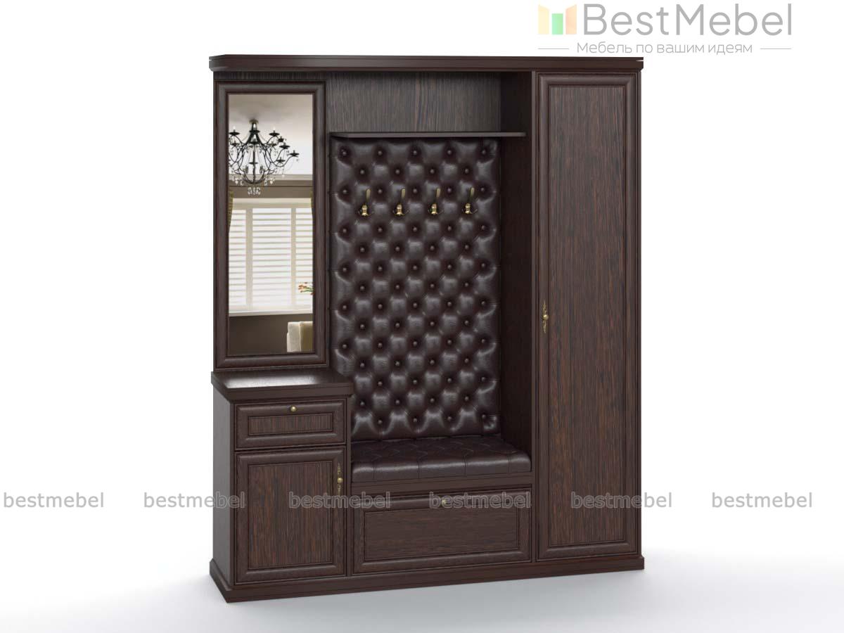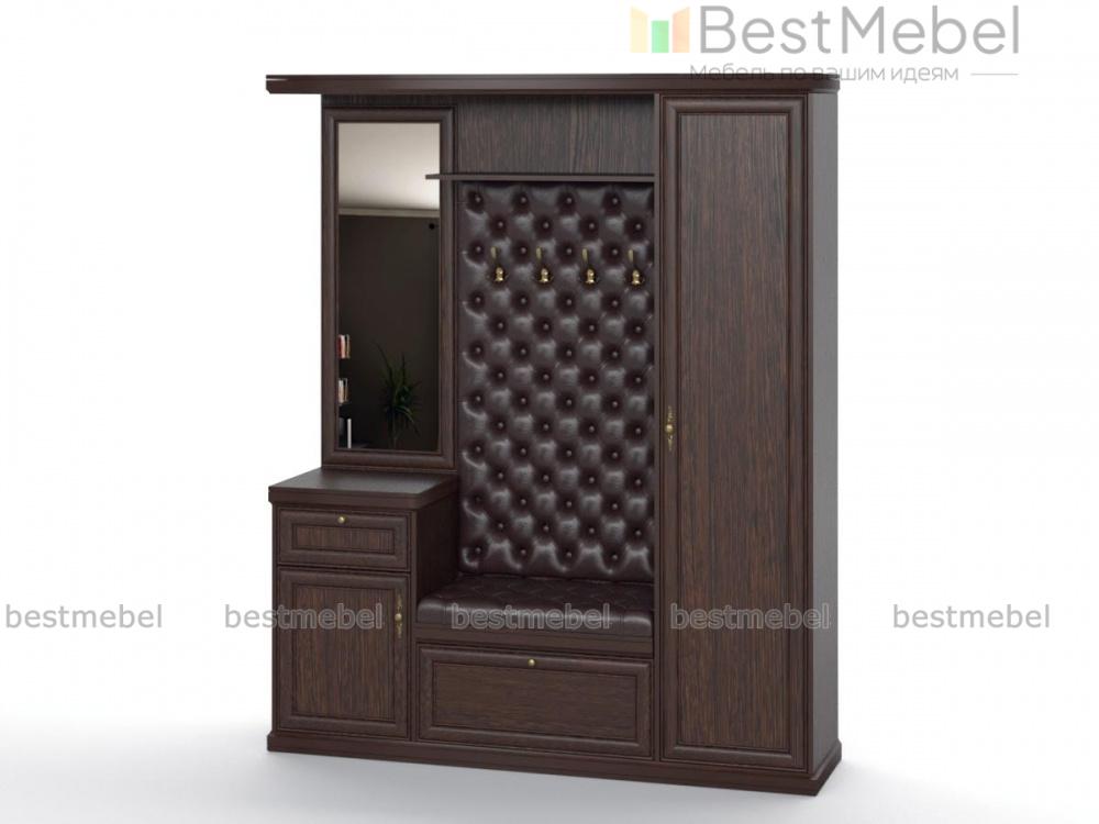 Прихожая Френсис-1 BMS поможет легко добиться порядка в помещении. Модель с рамочными фасадами глубоких древесных оттенков, карнизом и каретной стяжкой обивки смотрится массивной, респектабельной и надежной. Для компактного размещения одежды, обуви и аксессуаров предусмотрены распашной шкаф с выдвижной штангой, открытая вешалка с верхней полкой, обувница, большое зеркало и практичная тумба. Купить прихожую Френсис-1 BMS для меблировки в классическом стиле приглашаем в наш интернет-магазин.