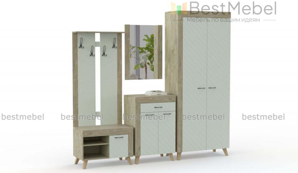 Прихожая Лили 12 BMS смотрится стильно благодаря сочетанию древесной фактуры и светлой отделки с фрезеровкой. Входящие в комплект модули: двухдверный платяной шкаф, комод, навесное зеркало и дополненная обувницей открытая вешалка помогут грамотно спланировать пространство. Широкие угловые накладки подчеркивают строгую геометрию модулей, а высокие ножки придают конструкции легкость. Купить прихожую Лили 12 BMS вы сможете в нашем интернет-магазине с выбором фурнитуры и цвета по каталогу.