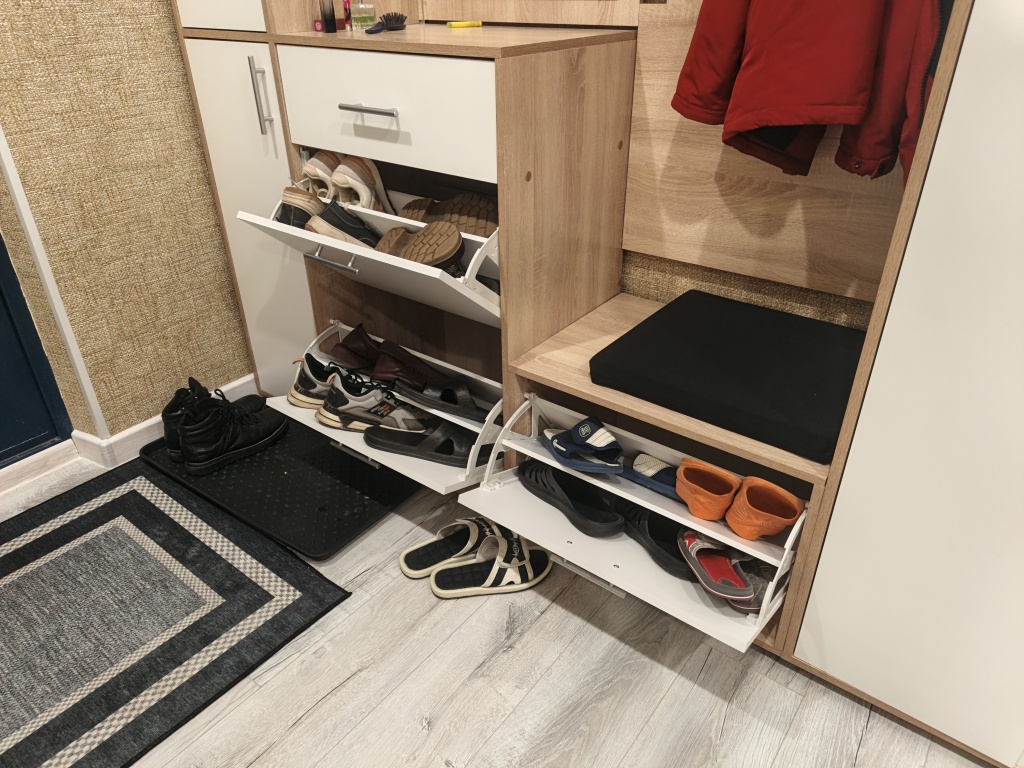 Прихожая Санторо BMS отличается минималистичным дизайном, а природные оттенки с имитацией древесной фактуры добавляют интерьеру тепла. Композиция радует большим количеством модулей: распашной шкаф, торцевой стеллаж, узкий двухдверный пенал, открытая вешалка, обувница и навесное зеркало, дополненное высокой тумбой. Светлые фасады без декора просты в уходе и долговечны. Купить прихожую Санторо BMS с учетом оптимальных размеров вы сможете в нашем интернет-магазине.