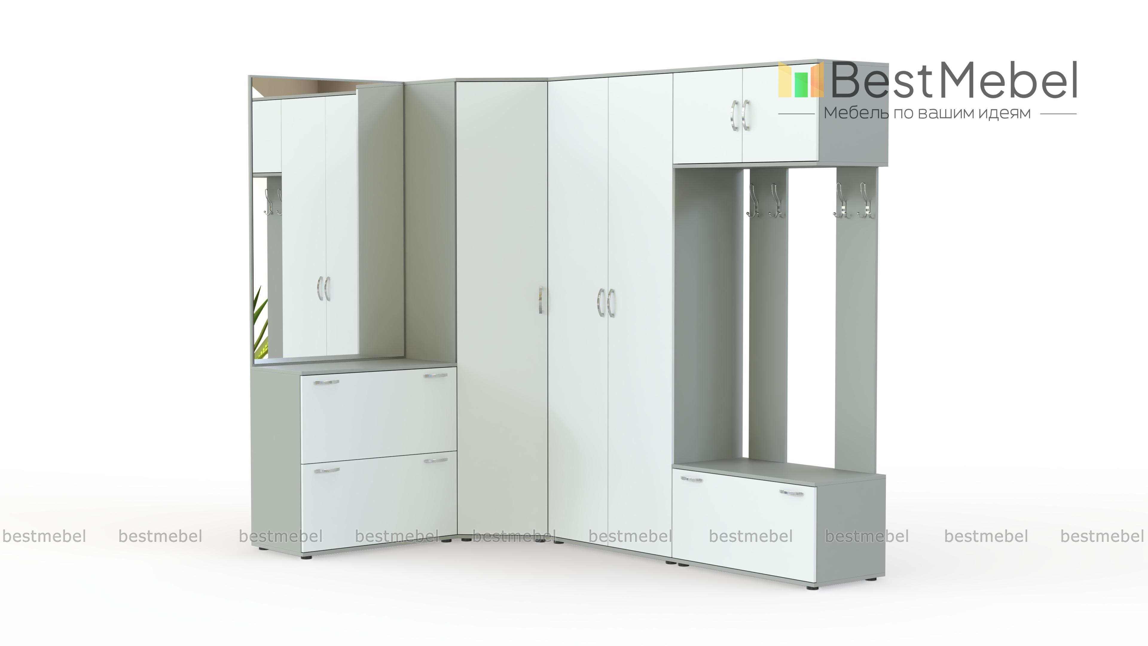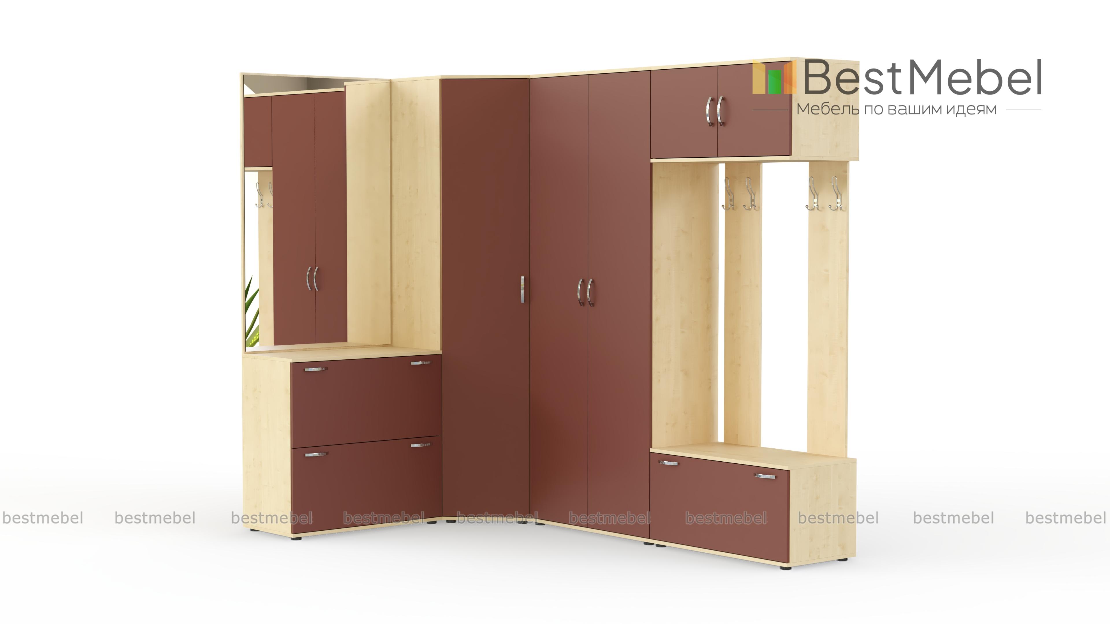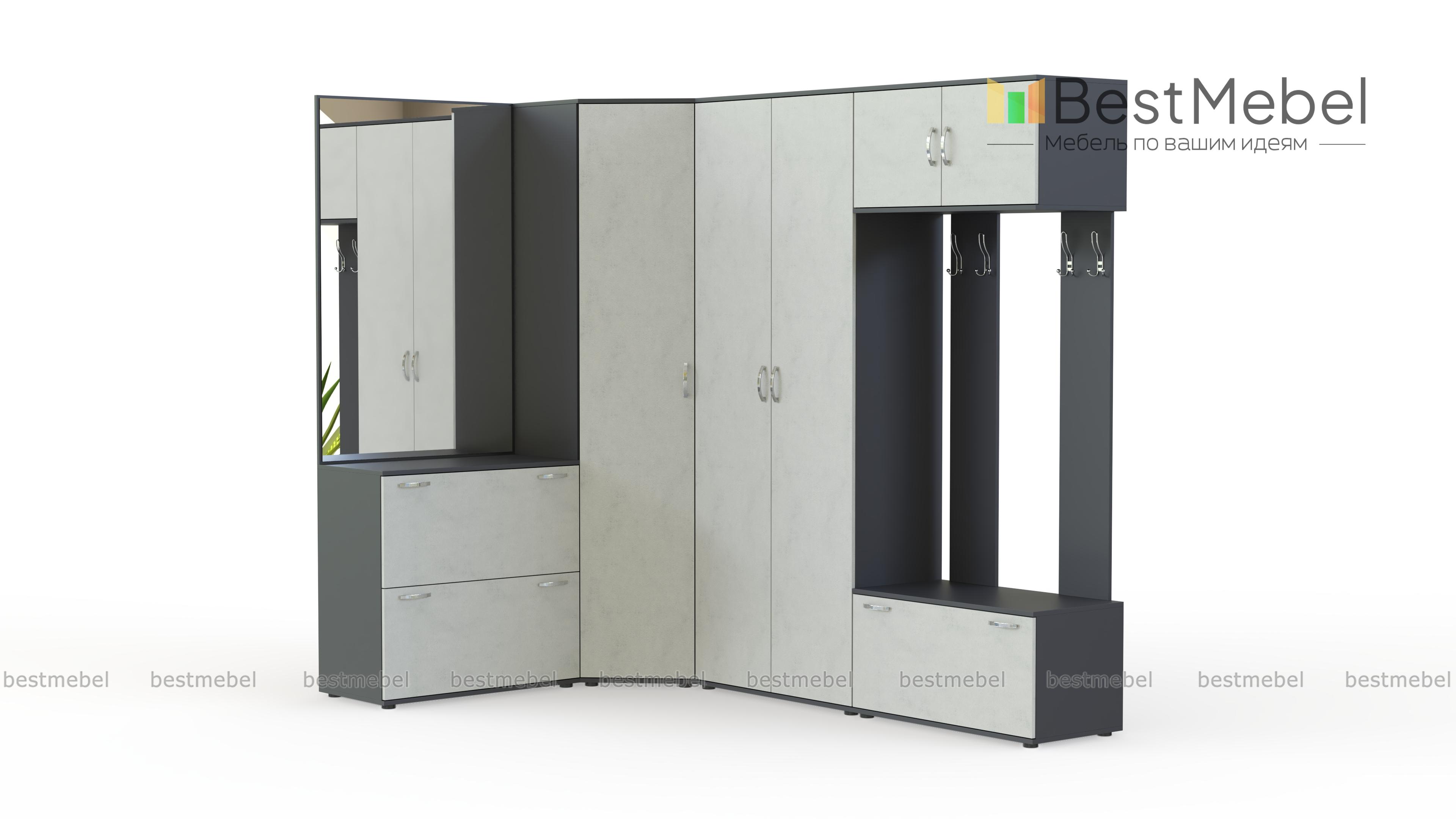 Прихожая Севара 14 BMS отличается практичностью конструкции и нестандартным цветовым решением фасадов, которые превращают модель в центральный предмет интерьера. Выгодно использующая особенности планировки угловая композиция включает в себя шкафную группу с платяным и бельевым отделениями, зеркало с тумбой и открытую вешалку с распашной антресолью и обувницей. Матовые темные фасады не требовательны в уходе и устойчивы к влаге, механическим повреждениям и выгоранию. Купить прихожую Севара 14 BMS приглашаем в наш интернет-магазин.