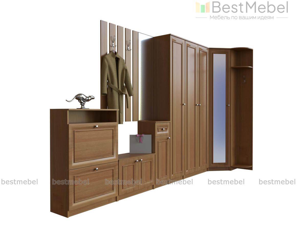 Прихожая Степ BMS состоит из отдельных модулей, которые помогут оформить входную зону в едином стиле. Угловой однодверный шкаф, пенал, двухдверный шкаф, тумбы для обуви и аксессуаров, открытые вешалки и навесное зеркало объединены в практичную Г-образную композицию. Рамочные фасады теплого древесного оттенка - всегда актуальная классика, а для комфорта хозяев и гостей дома предусмотрено ростовое зеркало на дверце. Купить прихожую Степ BMS вы сможете по доступной цене в нашем интернет-магазине.