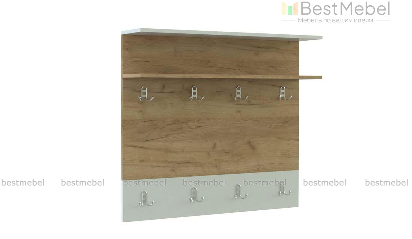 Вешалка Камелия 1 BMS выполнена из качественной ламинированной плиты с имитацией массива дерева и контрастным декором. Горизонтальную навесную панель вы сможете закрепить на удобной для вас высоте и сэкономить пространство прихожей. Для компактного размещения одежды, аксессуаров и головных уборов предусмотрены восемь крючков, расположенных на двух уровнях, и две верхние полки. Купить вешалку Камелия 1 BMS приглашаем в наш интернет-магазин с выбором цвета по каталогу.
