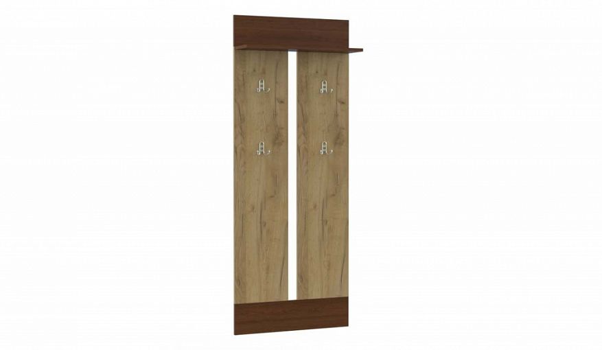 Вешалка Скандинавия 1 BMS состоит из двух широких вертикальных панелей, на которых закреплены две пары крючков. Практичная конструкция позволяет разместить одежду и аксессуары даже в небольшой прихожей, а для головных уборов предусмотрена верхняя полка. Нарочитую простоту формы вешалки подчеркивают натуральные оттенки с имитацией массива дерева. Купить вешалку Скандинавия 1 BMS для меблировки современной прихожей вы сможете в нашем интернет-магазине.