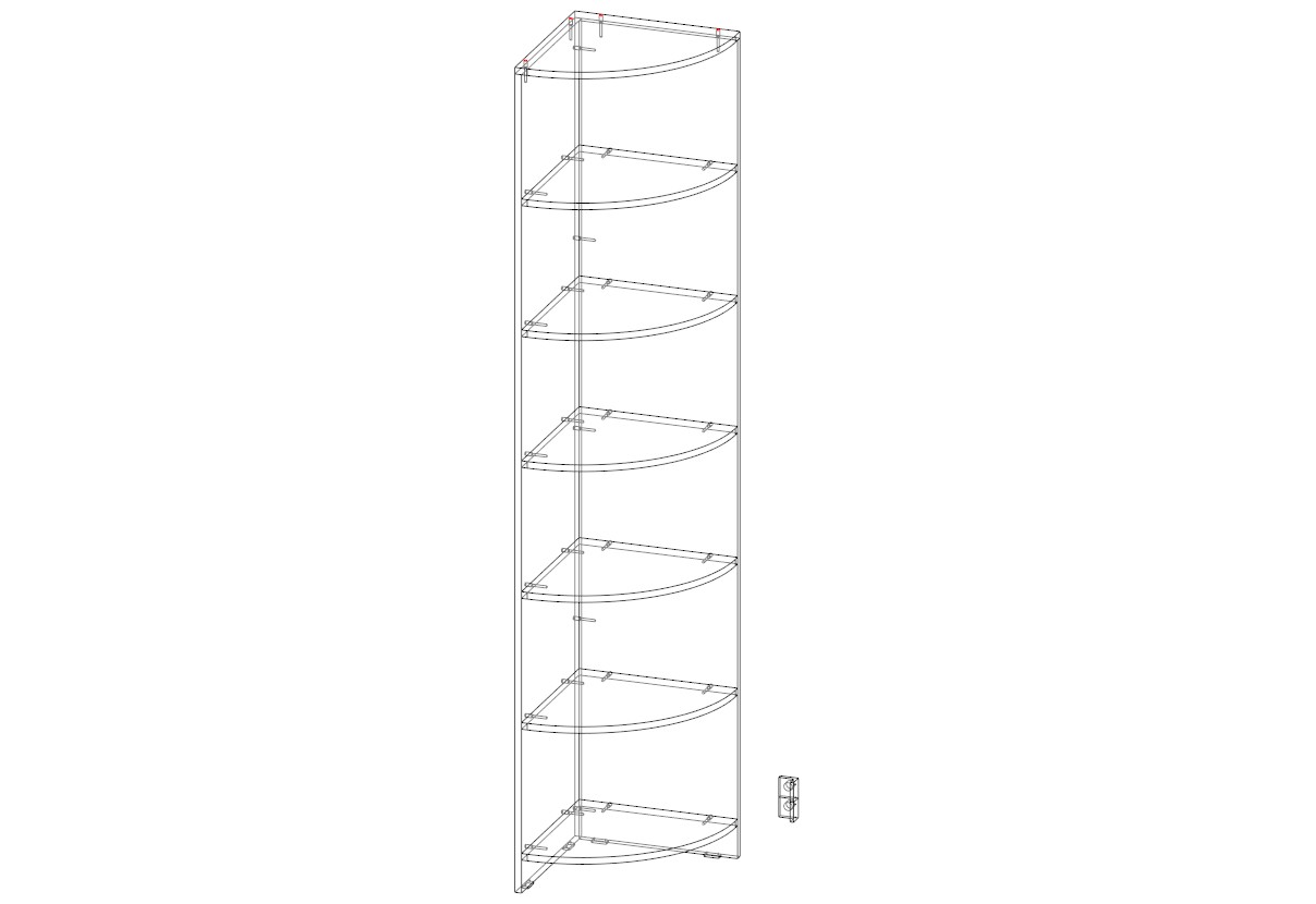 Угловой элемент к шкафу – это модель, оборудованная шестью радиусными полками. Практичная конструкция позволяет эффективно использовать пространство, а безопасность обеспечит отсутствие острых углов. Открытые полки оптимальны для размещения папок с документами, предметов декора и необходимых в зоне быстрого доступа мелочей. Купить угловой элемент вы сможете в нашем интернет-магазине от производителя BestMebelShop!