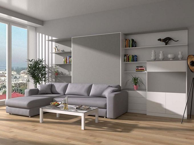 Шкаф-кровать с диваном Флора 14 BMS станет выбором тех, кто ценит нестандартный подход к организации пространства, функциональность и стильный минимализм. Эффектная композиция 3 в 1 – это удобная система хранения, комфортная зона отдыха с просторным угловым диваном и рабочее место, а легко получить полноценную кровать поможет откидной модуль-трансформер с плавающей полкой. Актуальное цветовое решение представляет собой микс белого и оттенка платины. Купить шкаф-кровать с диваном Флора 14 BMS приглашаем в наш интернет-магазин по отличной цене.