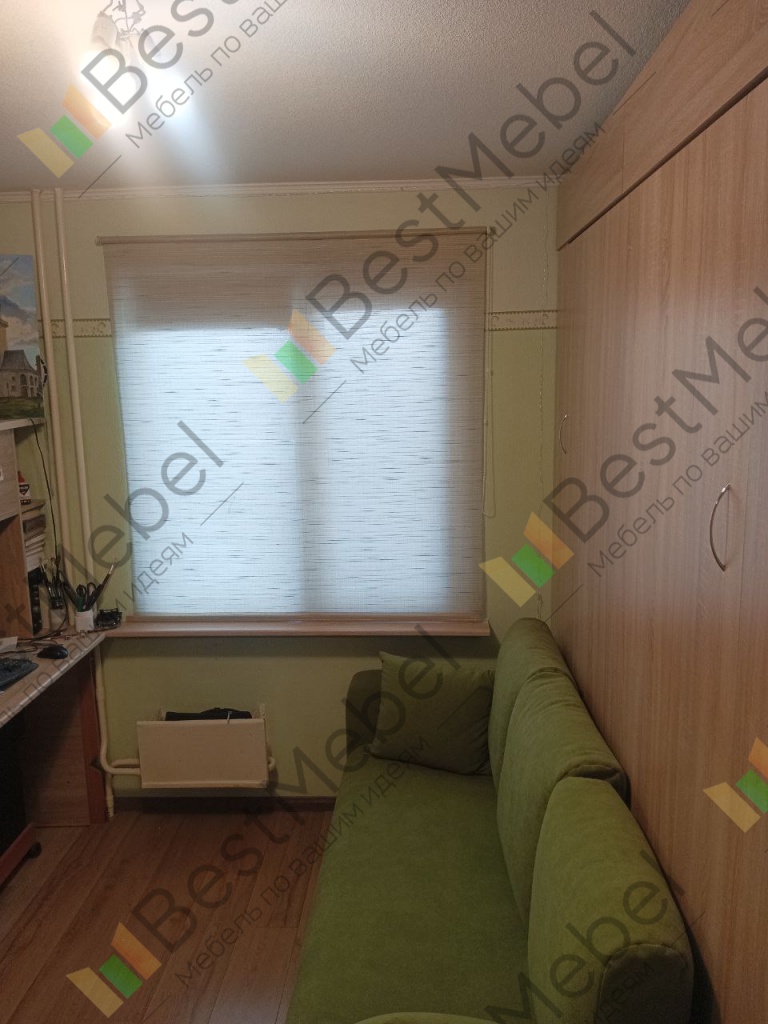Сделал заказ в середине ноября. Очень долго делали, что то постоянно не было на производстве, то нужного цвета, то ткани. В итоге заказ пришёл через 2,5 месяца в начале февраля. Приехал в полной комплектации, кроме понижающего трансформатора, который по рекламации подвезли позже, через неделю, но на сборку это не влияло. Сам шкаф удобный,внутри при раскинутой кровати есть полки под разные мелочи и шкафчики. Я сделал проводку к каждой стороне и вывел розетки и светильники, очень функционально, можно ставить телефоны на зарядку, что бы под боком были. Верхние ящики-антресоли вмещают подушки и пледы, но так как у нас высота потолков не позволяла заказать в полную высоту, то газлифты на дверцы установить не подразумевалось конструкцией (о чём меня предупреждали ещё в наале заказа), и это кстати весьма неудобно, т.к. нужно иметь третью руку, что бы держать крышку, а двумя руками засовывать подушки..Ещё подъёмные газлифты самого корпуса кровати, а именно кронштейны, не вызывают доверия. Но тут как говорится за ваши деньги любой каприз. Я выбрал по умолчанию дешёвые. Есть получше. Советую брать их. Текущие довольно упругие, на подъём тяжеловатые, но жена справляется. Самое непродуманное это большой объём подушек от дивана, которые приходится складировать куда то рядом. Это проблема. У меня есть мысль как заколхозить это, но хотелось бы видеть решение от производителя. В целом я доволен шкафом-кроватью. Кровать была моей мечтой. Потому что две большие комнаты мы отдали детям, там у них творческие мастерские, музыкальные инструменты, а себе оставили маленькую комнатушку 9 кв.метров. И всё время спали на раскладном диване. По этому, когда я увидел эту кровать и её размеры, то я конечно загорелся идеей разместить её в этой комнате. И у меня получилось!