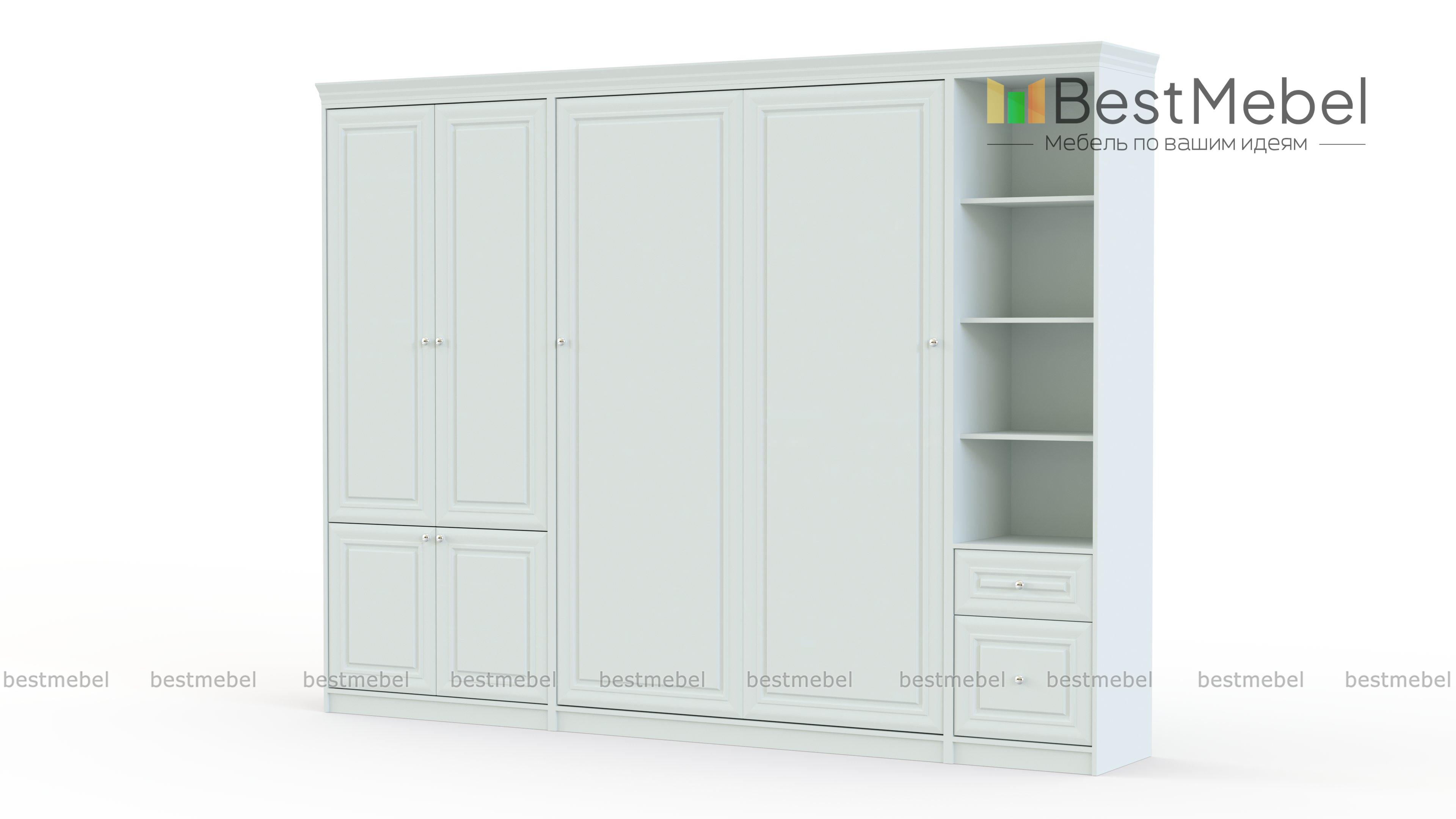 Шкаф-кровать трансформер Дача BMS – практичное решение для организации пространства в городской квартире или загородном доме. Классическая стенка, оборудованная распашным шкафом для одежды, открытыми полками и выдвижными ящиками для мелочей, дополнена откидной кроватью. При помощи вертикального механизма подъема вы легко получаете основное или гостевое спальное место. Рамочные фасады с ручками-кнопками выполнены в теплых тонах и гармонично вписываются в традиционные интерьеры. Купить шкаф-кровать трансформер Дача BMS вы сможете в нашем интернет-магазине.