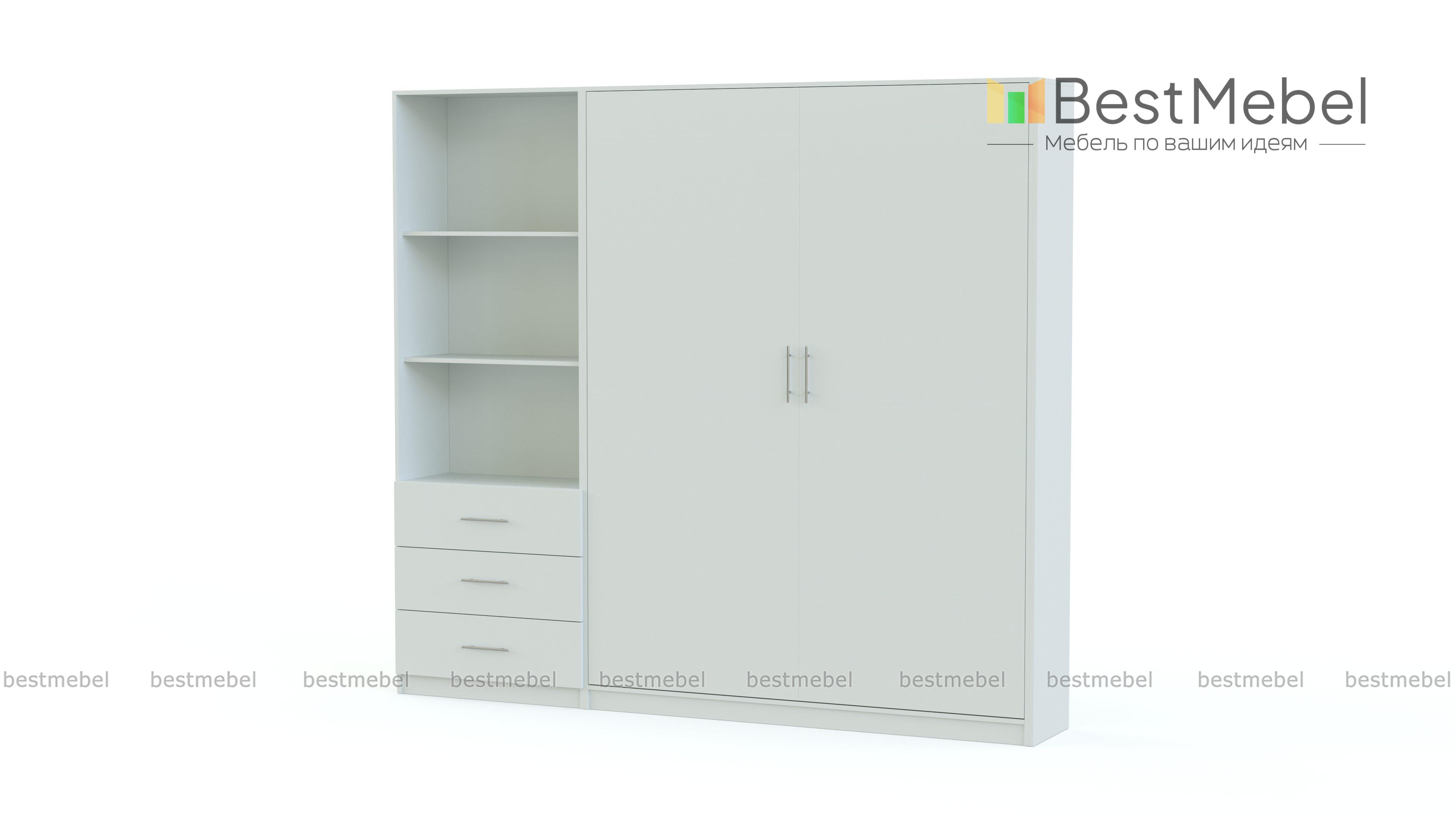 Шкаф-кровать трансформер Куба BMS отличается универсальным современным дизайном и подойдет владельцам малогабаритных квартир и студий. Многофункциональная модель 2 в 1 конструктивно объединила секцию с выдвижными ящиками и полками для книг, предметов декора и бытовых мелочей и откидную двуспальную кровать, скрытую за имитацией двухдверного шкафа. Надежный механизм трансформации обеспечит долговечность и простоту в эксплуатации. Купить шкаф-кровать трансформер Куба BMS и освободить комнату от лишней мебели вам поможет наш интернет-магазин.