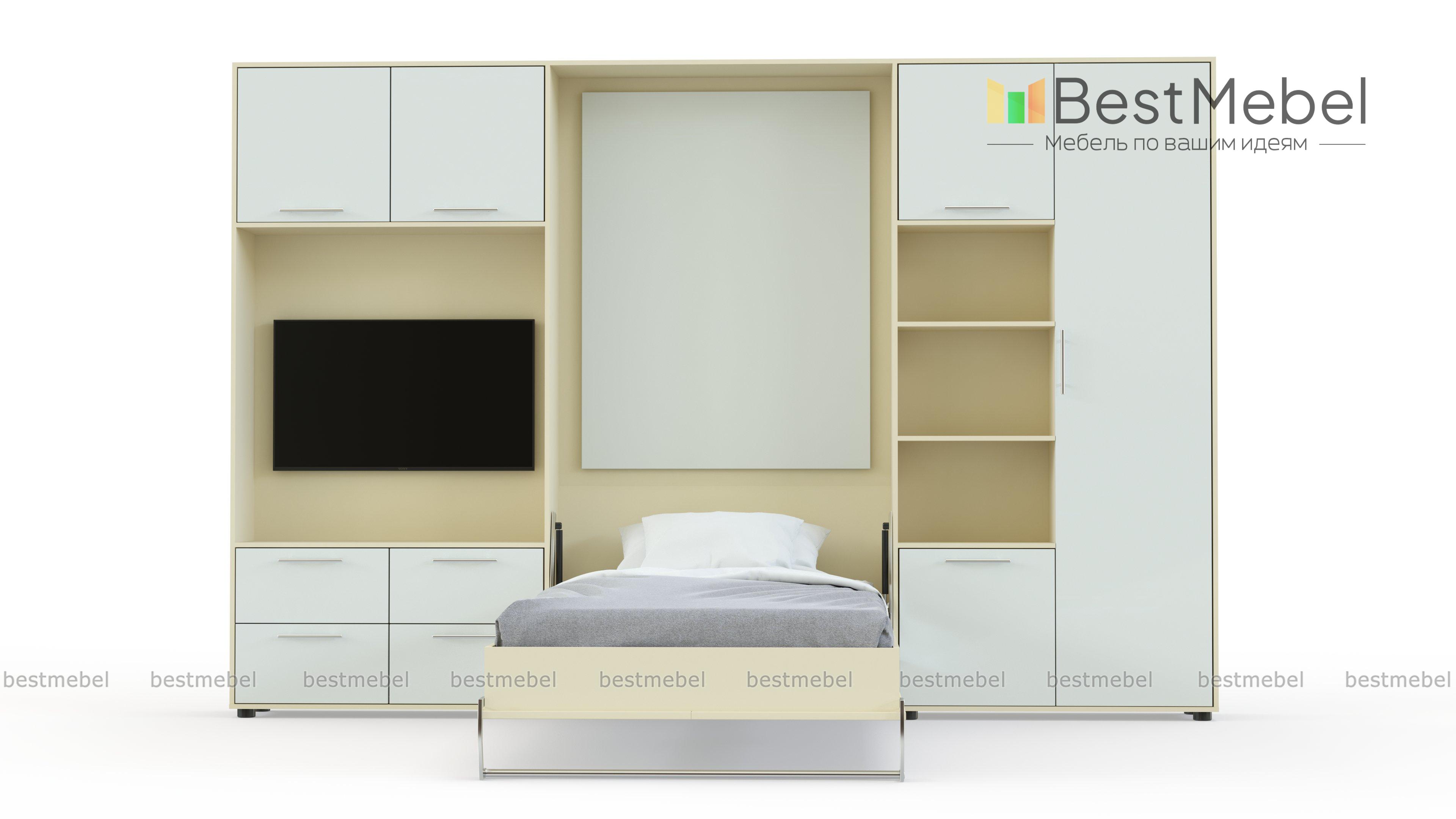 Шкаф-кровать трансформер Вита BMS – простое и эффективное решение для экономии пространства. Современная стенка, оборудованная всем необходимым для хранения одежды, бытовых мелочей и книг, размещения предметов декора и оформления зоны ТВ, дополнена встроенной откидной кроватью. Спальное место с вертикальным механизмом скрыто за раздвижной секцией и легко опускается вниз при необходимости. Купить шкаф-кровать трансформер Вита BMS вы сможете в нашем интернет-магазине, подобрав необходимые параметры.