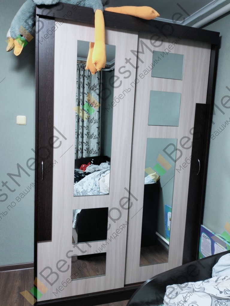 Шкаф-купе Феникс-лайт BMS отличается компактными размерами и простым, но элегантным дизайном. Модель в современном стиле станет отличным выбором для малогабаритных помещений, в которых важна экономия места. Раздвижные дверцы декорированы зеркальными вставками с оригинальным рисунком и контрастными накладками. Внутреннее наполнение – отделение со штангой и вместительная антресольная полка. Купить шкаф-купе Феникс-лайт BMS быстро и недорого приглашаем в наш интернет-магазин.