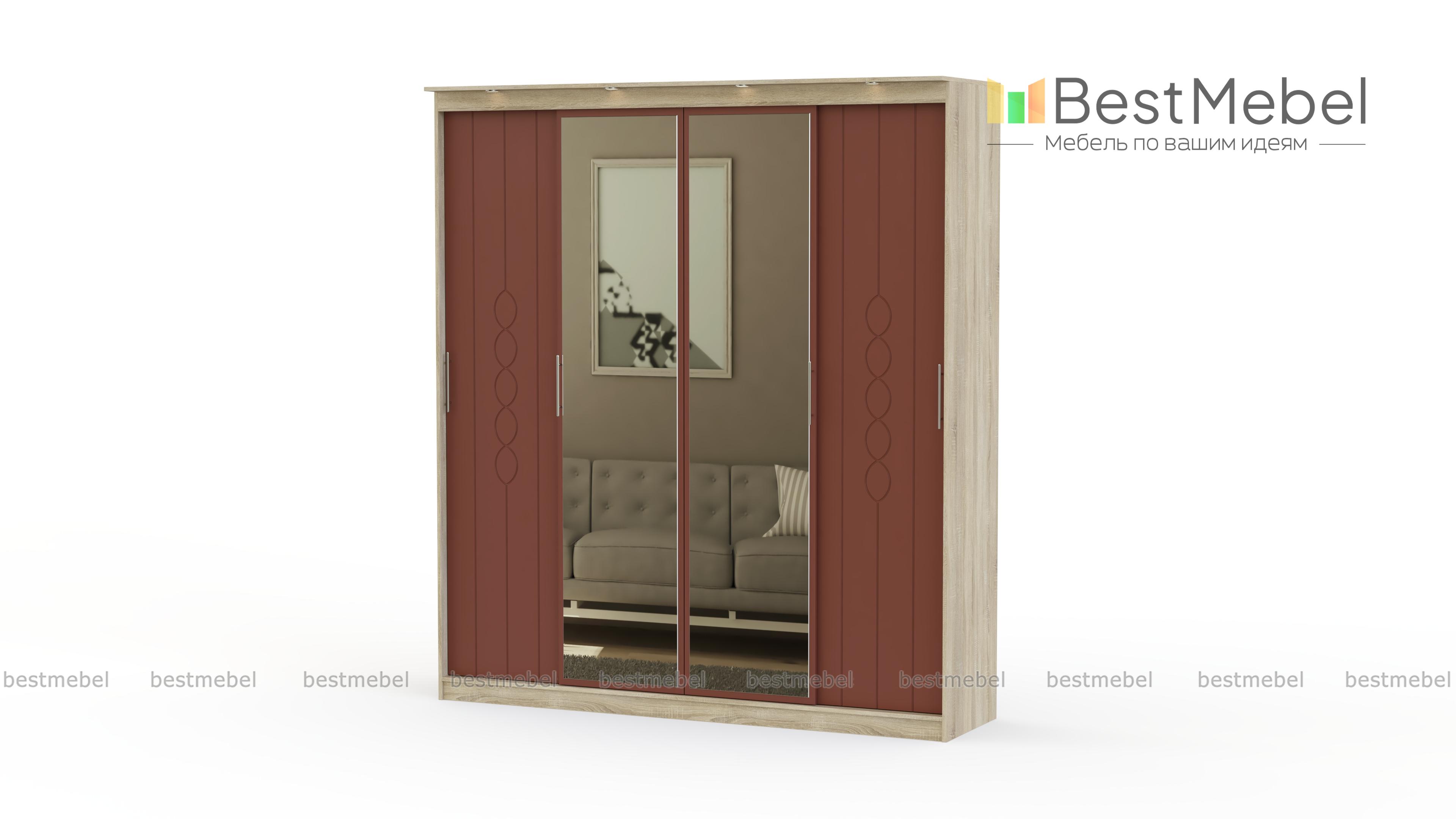 Шкаф-купе Классик 4 МДФ BMS – крупногабаритная конструкция, которая может органично вписаться в нишу или быть установленной вдоль стены. Четырехдверная модель вместительна, но экономно использует пространство за счет раздвижной конструкции. Оборудованный платяным отделением и полками, шкаф легко разместит весь гардероб, а незаменимыми для примерок и ухода за собой станут зеркальные дверцы. Фасады выполнены в контрастных тонах и декорированы фрезерованным рисунком. Купить шкаф-купе Классик 4 МДФ BMS вы сможете в нашем интернет-магазине по выгодной цене.