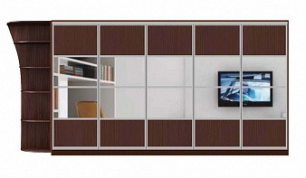 Шкаф-купе Корнер 3 BMS поможет организовать удобное хранение большого количества вещей. Пятидверная модель с угловым элементом отличается крупными габаритами и выполнена в классических древесных тонах, а зеркальные вставки на фасаде визуально облегчают композицию и придают комнате дополнительную глубину. Благодаря практичной конструкции вы сможете разместить как предметы гардероба, так и разнообразные бытовые вещи и декоративные мелочи. Купить шкаф-купе Корнер 3 BMS приглашаем в наш интернет-магазин.