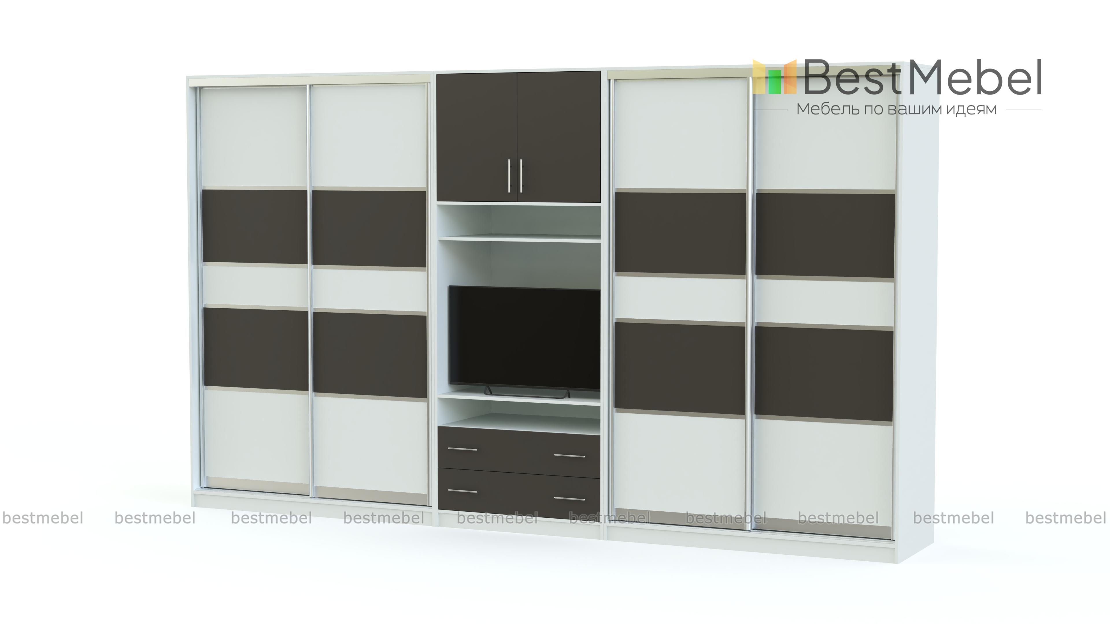 Шкаф-купе Круиз-1 BMS – это многофункциональная конструкция, которая станет альтернативой привычным стенкам в интерьере современной гостиной. Практичная модель скроет недостатки планировки и эффективно использует доступное пространство. Композиция включает в себя двухдверные шкафы-купе, объединенные в центральной части тумбой под ТВ, нишами и распашной антресолью. Цветные фасады в МДФ отличаются износостойкостью и простотой ухода, а раздвижная конструкция сэкономит полезную площадь. Купить шкаф-купе Круиз-1 BMS вы всегда сможете в нашем интернет-магазине.