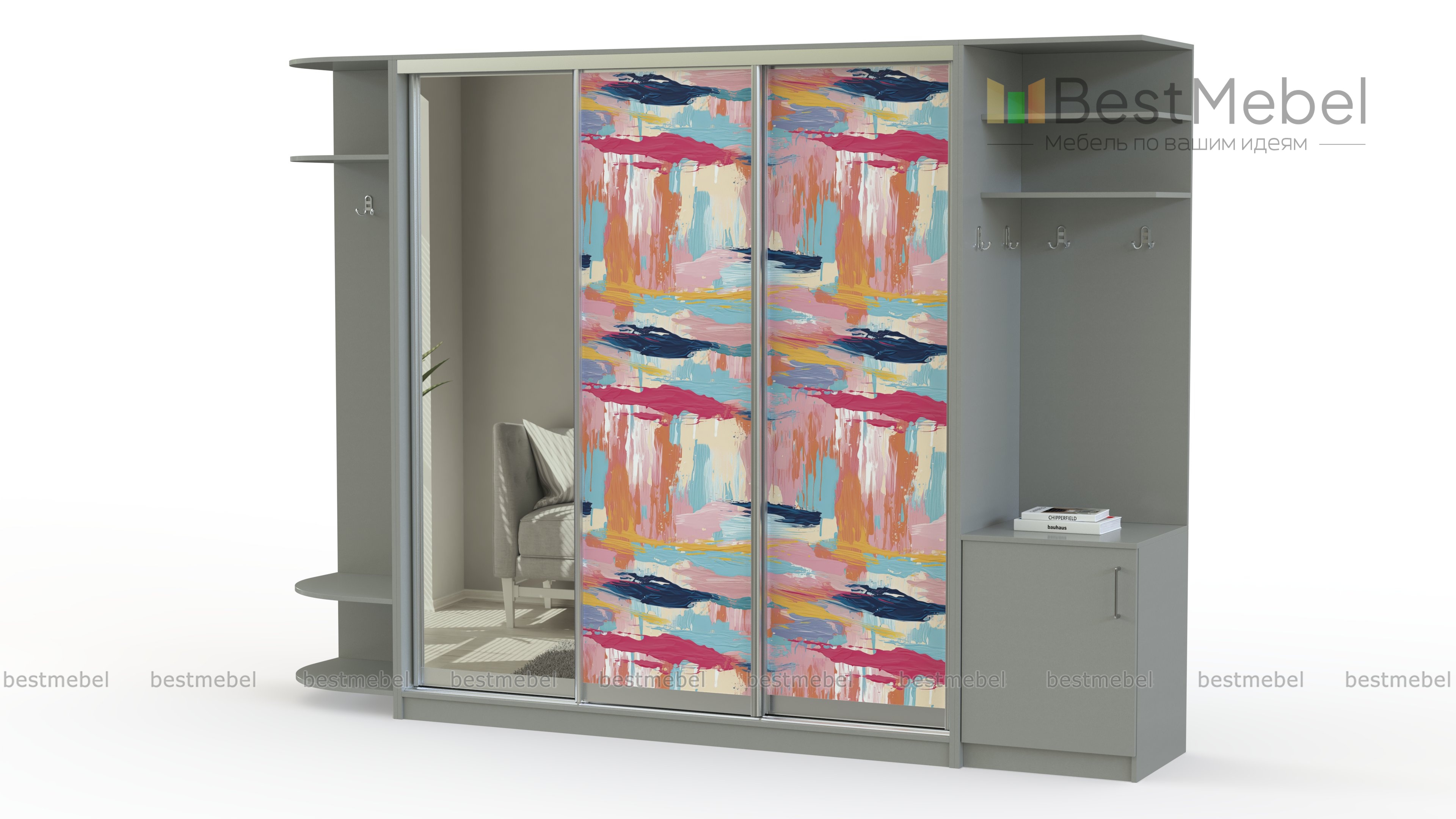 Шкаф-купе Листья 14 BMS поможет вам обустроить гардеробную зону в прихожей. Наличие закрытой системы хранения и двух модулей с открытыми вешалками, полками и тумбой позволяет разместить верхнюю одежду, повседневную обувь и аксессуары. Зеркальная створка заменит отдельно стоящее зеркало, а стильным штрихом в интерьере станет абстрактная цветная фотопечать. Купить шкаф-купе Листья 14 BMS с возможностью выбора цвета и размеров приглашаем в наш интернет-магазин.