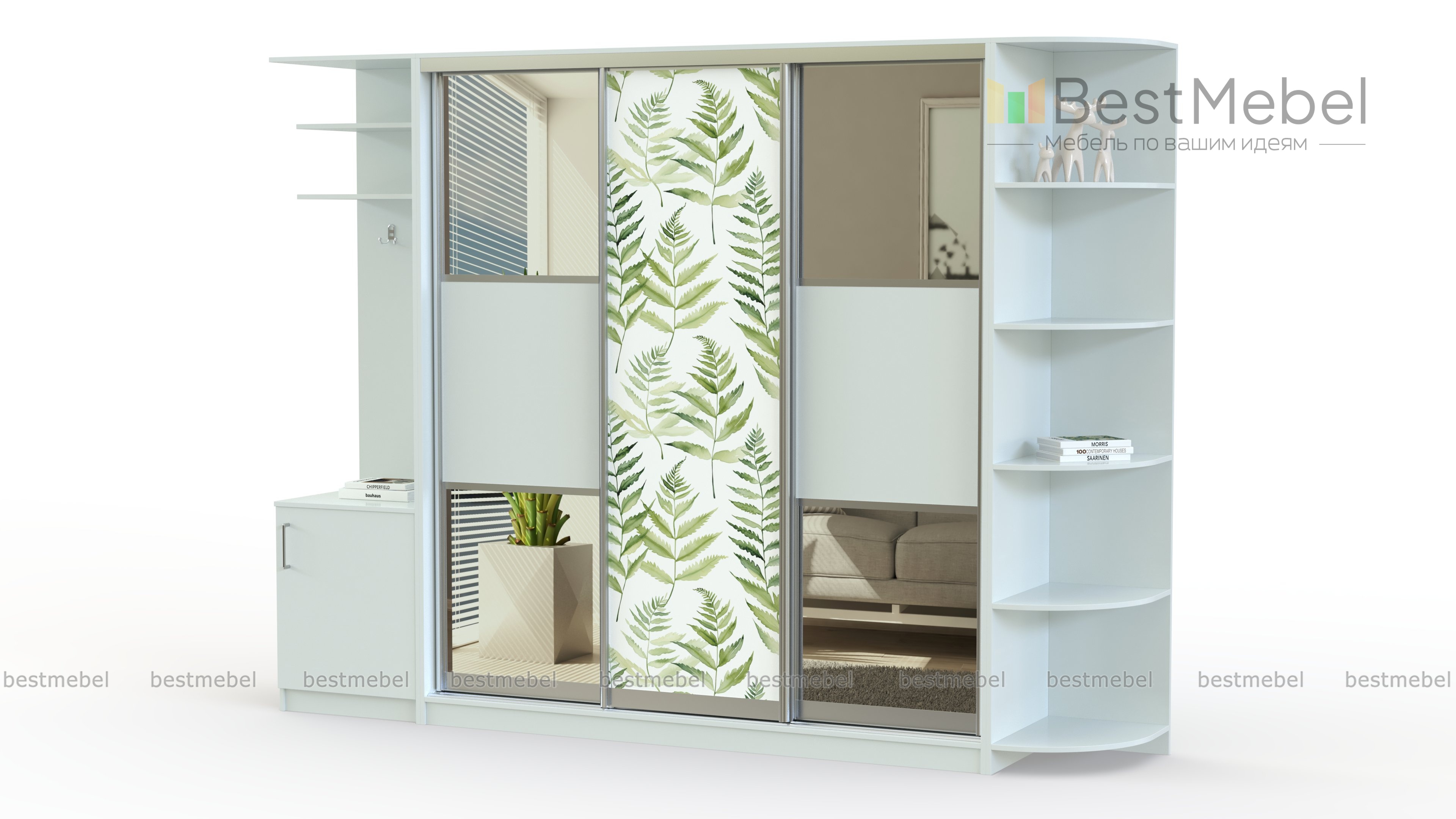 Шкаф-купе Листья 6 BMS с зеркальными фасадами делает интерьер «воздушным», а растительный принт смотрится стильно и свежо. Многофункциональная конструкция состоит из трехдверного гардероба, углового модуля с крючками, верхними полками, тумбой и стеллажа. Благодаря светлой палитре шкаф совсем не выглядит громоздко и органично вписывается в современные интерьеры. Купить шкаф-купе Листья 6 BMS с выбором любых размеров, цвета и наполнения приглашаем в наш интернет-магазин.