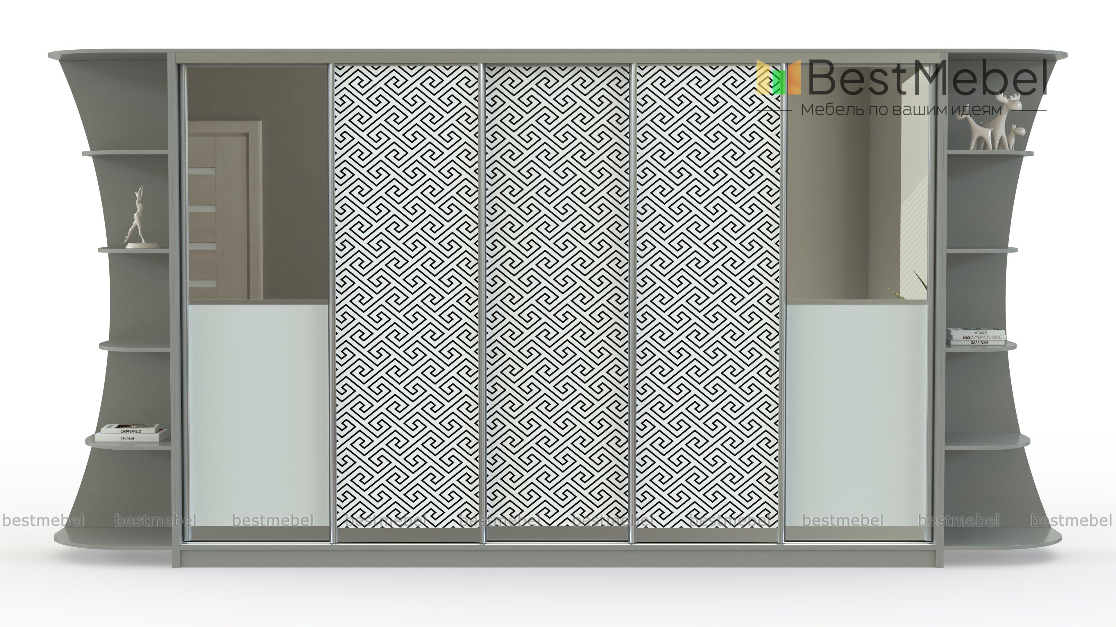 Шкаф-купе Мираж 11 BMS станет центральным предметом меблировки уютной современной гостиной. Пятидверная модель с торцевыми фигурными стеллажами оптимальна для просторных помещений и поможет разгрузить другие комнаты дома от лишней мебели, компактно разместив большое количество вещей. Фасад шкафа декорирован зеркальными вставками и оригинальной фотопечатью в нейтральных тонах. Купить шкаф-купе Мираж 11 BMS приглашаем в наш интернет-магазин по лучшей цене.