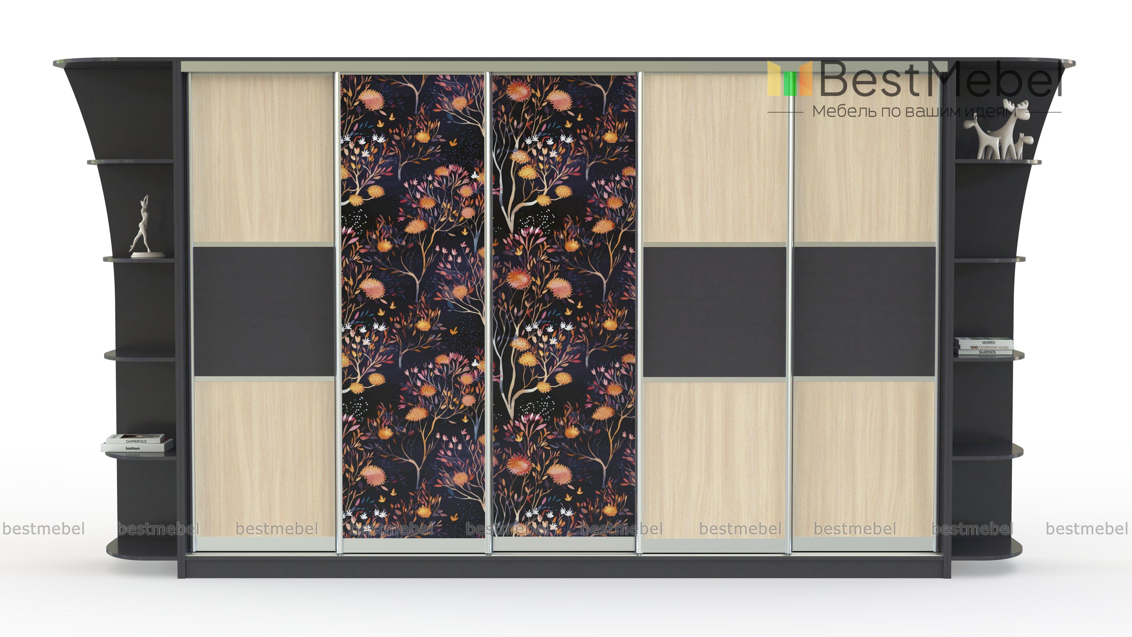 Шкаф-купе Мираж 12 BMS сочетает в оформлении строгую геометрию и изящную цветочную фотопечать. Пятидверная модель с ярким дизайном фасада дополнена торцевыми стеллажами, придающими эффектный вид силуэту. Удобная система хранения станет залогом отличной вместительности шкафа, а долговечность и комфорт в эксплуатации обеспечат материалы и фурнитура высокого качества. Купить шкаф-купе Мираж 12 BMS с индивидуальным подбором размеров, цвета и наполнения вы сможете в нашем интернет-магазине.
