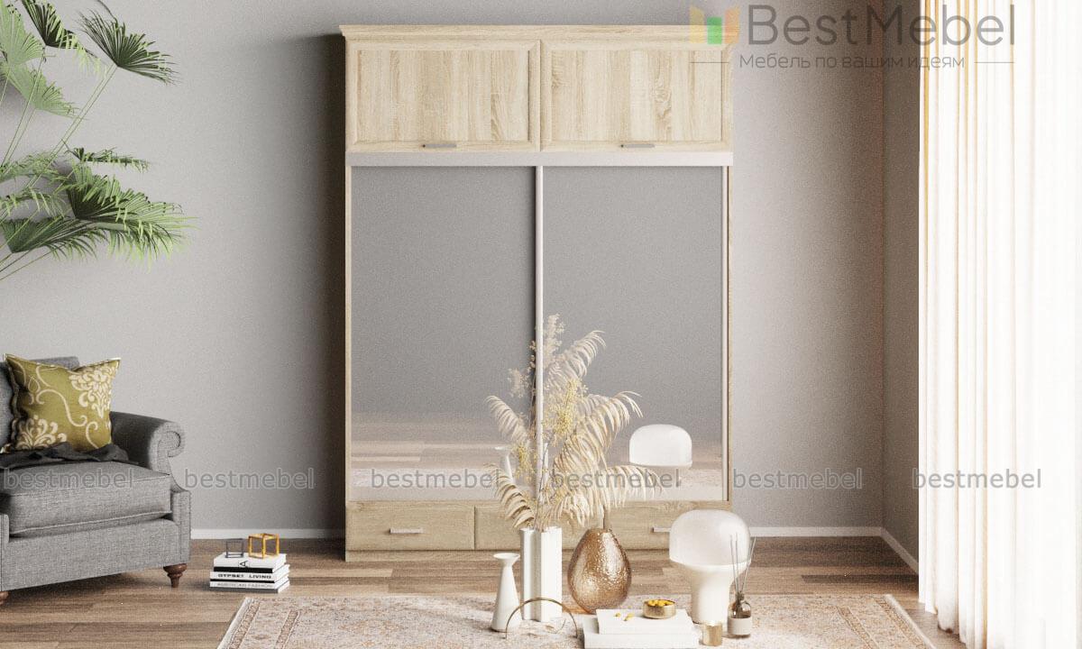 Шкаф-купе Нэмо 11 BMS гармонично впишется в интерьер спальни, гостиной или прихожей и разместит большое количество вещей. Комбинированная модель оборудована тремя выдвижными ящиками для мелочей в основании, двухдверным отделением-купе с полкой и штангой, а также антресолью с открывающимися вверх дверцами. Полностью зеркальные раздвижные дверцы удобны для примерки и визуально расширяют границы комнаты. Купить шкаф-купе Нэмо 11 BMS вы сможете в нашем интернет-магазине.