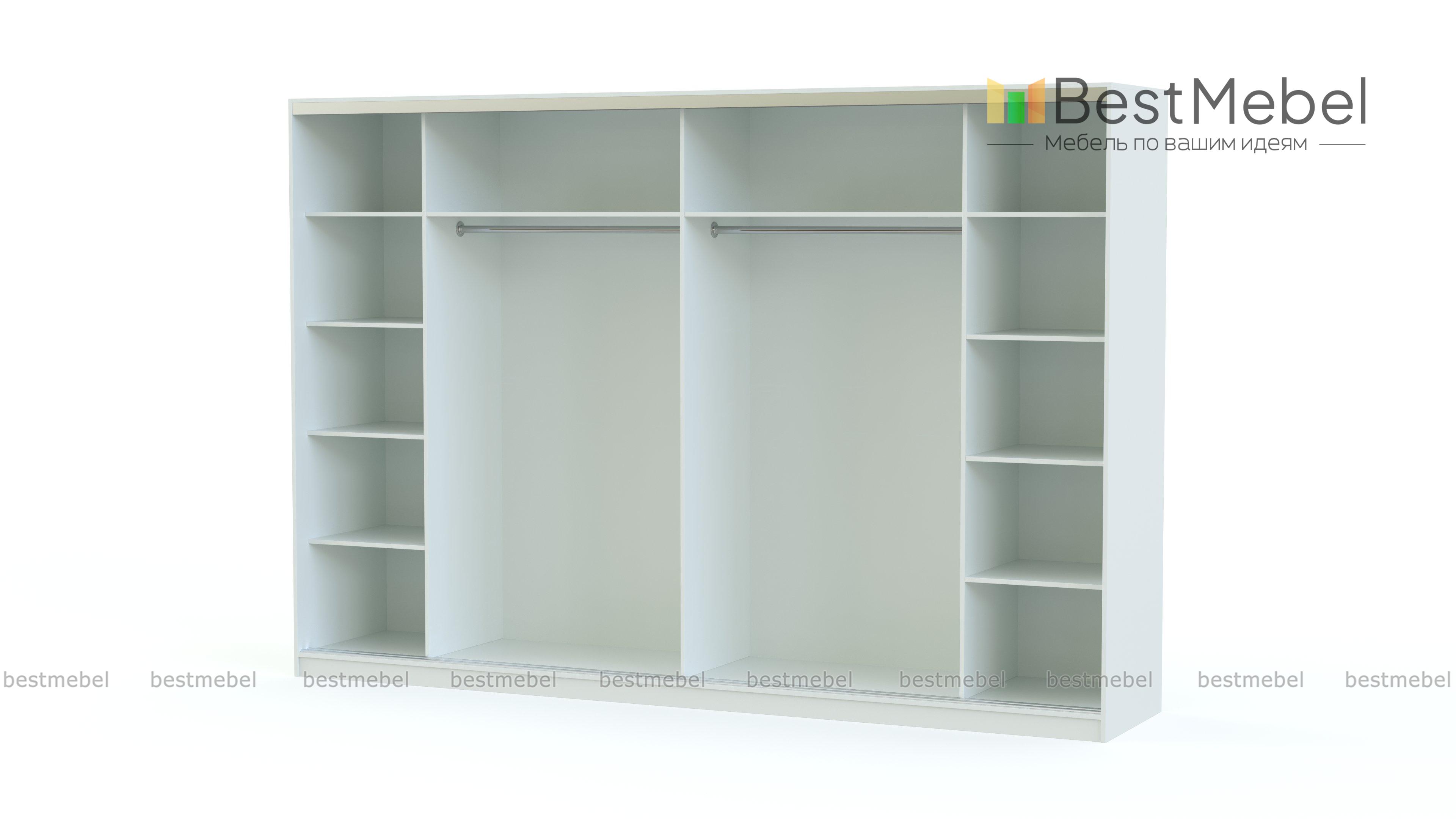 Шкаф-купе Остин Лайт 16 BMS поможет не только убрать ваш гардероб и постельные принадлежности, но и визуально скорректирует размеры помещения. Полностью зеркальный фасад шестидверной модели сразу делает прихожую, гостиную или спальню светлее и больше. За легко движущимися по направляющим раздвижными створками скрыты две штанги для одежды на вешалках и два ряда бельевых полок. Купить шкаф-купе Остин Лайт 16 BMS приглашаем в наш интернет-магазин с изготовлением по индивидуальным размерам.