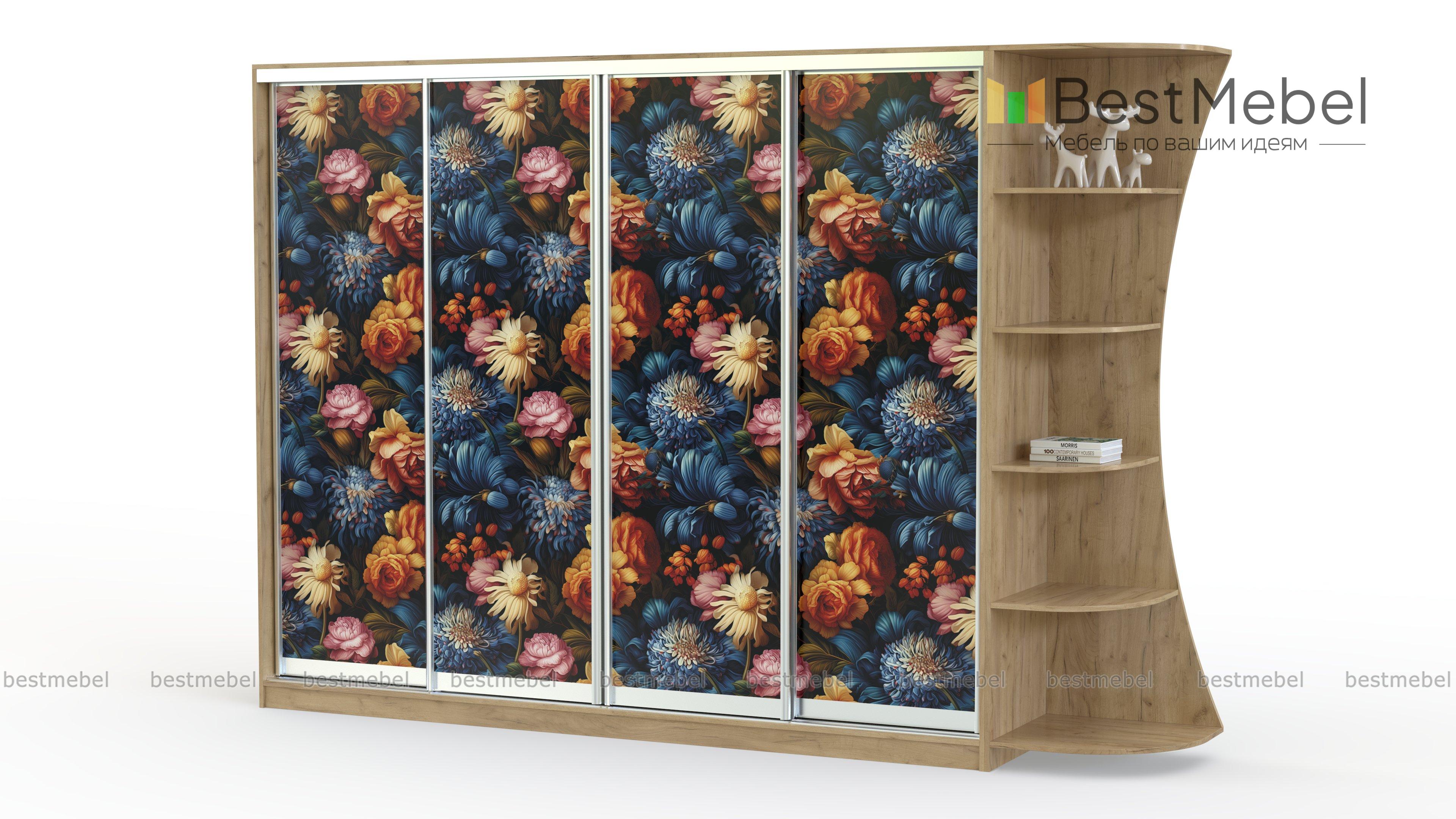 Шкаф-купе Соло 26 BMS имеет практичную комбинированную конструкцию и отличается ярким дизайном фасада. Четырехдверная модель с просторными внутренними отделениями дополнена расположенным с торца фигурным стеллажом для предметов декора и необходимых под рукой мелочей. Рисунок-фотопечать с изображением цветов создаст в комнате уютную атмосферу и надолго сохранит эстетичный вид благодаря износостойкости материалов. Купить Шкаф-купе Соло 26 BMS по доступной цене приглашаем в наш интернет-магазин.